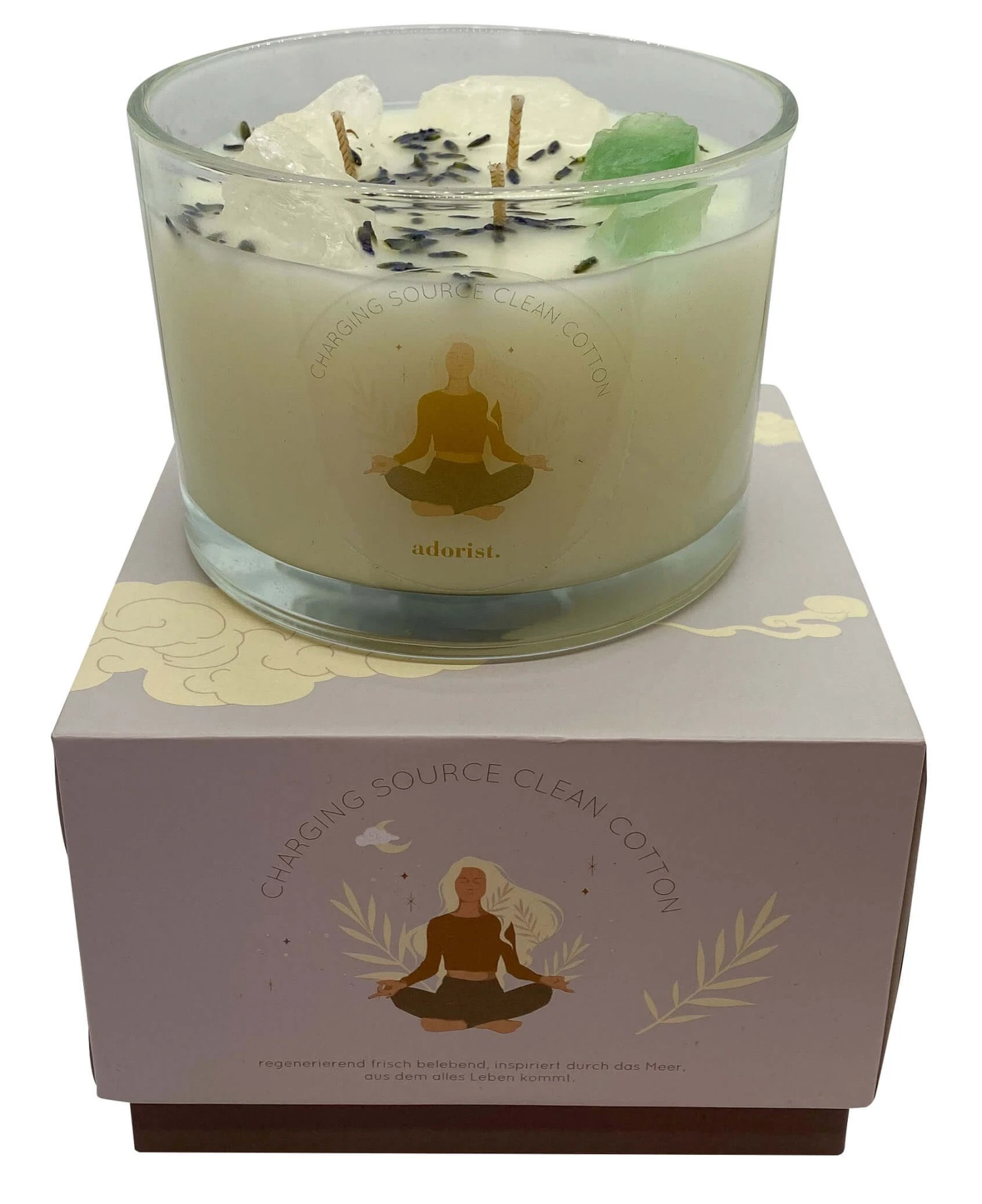 - Vegan und handgemacht: Unsere Kerzen besitzen individuell kreierte Düfte und jede Kerze wird einzeln mit Kristallen und oder Blüten dekoriert. Brenndauer: 45h+