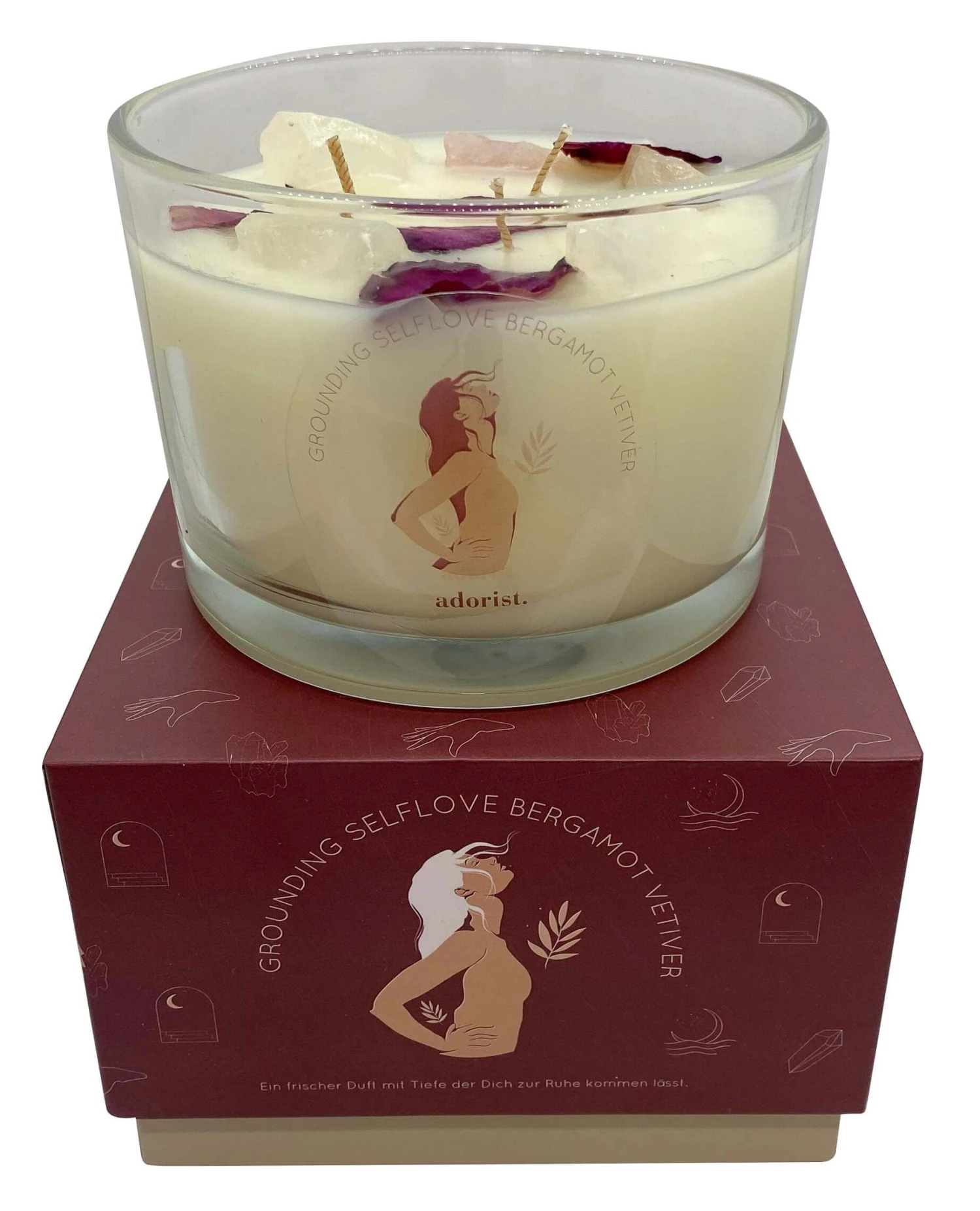 - Vegan und handgemacht: Unsere Kerzen besitzen individuell kreierte Düfte und jede Kerze wird einzeln mit Kristallen und oder Blüten dekoriert. Brenndauer: 45h+