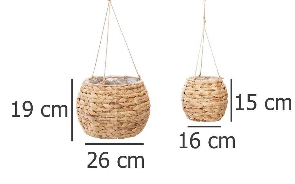 Hängetöpfe im maritimen Stil betonen perfekt jede Art von Haushaltspflanzen, von Orchideen bis zu Palmen oder Sukkulenten. Dank der Tatsache, dass die Gehäuse aus Seegras bestehen, können Sie Ihre Pflanzen im Haus, Garten und auf dem Balkon anbauen. Dieses Material ist beständig gegen alle Wetterbedingungen. Das Set besteht aus 2 Stück Gehäuse mit einem Durchmesser des Gehäuses wird in jedem Interieur atemberaubend aussehen .