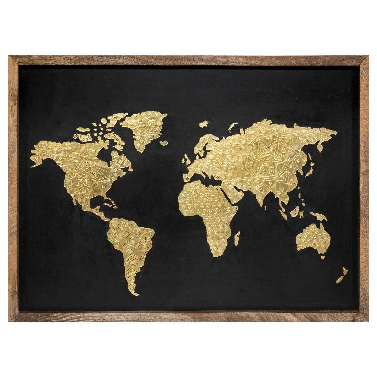 Wanddekoration – World Map ist ein Produkt der renommierten Marke Atmosphera, die sich auf das Sortiment an Accessoires, Dekorationen und Zubehör für Haushaltsgeräte spezialisiert hat. Bemerkenswert ist vor allem das ungewöhnliche Design des vorgestellten Artikels: Das Ornament hat die Form einer Plakette mit einer Weltkarte. Die Konturkarte der Kontinente wurde mit einer schönen dekorativen Prägung verziert. Die Dekoration wurde aus strapazierfähigem MDF hergestellt. Ein weiterer Vorteil ist das Farbschema: Die Karte hat eine schöne goldene Farbe, die sich von einem schwarzen Hintergrund abhebt. Aus diesem Grund funktioniert diese Dekoration besonders in Räumen, die im Stil von Glamour eingerichtet sind. Wähle es aus und sieh, wie sehr sich ein charakteristisches Ornament ändern kann.
