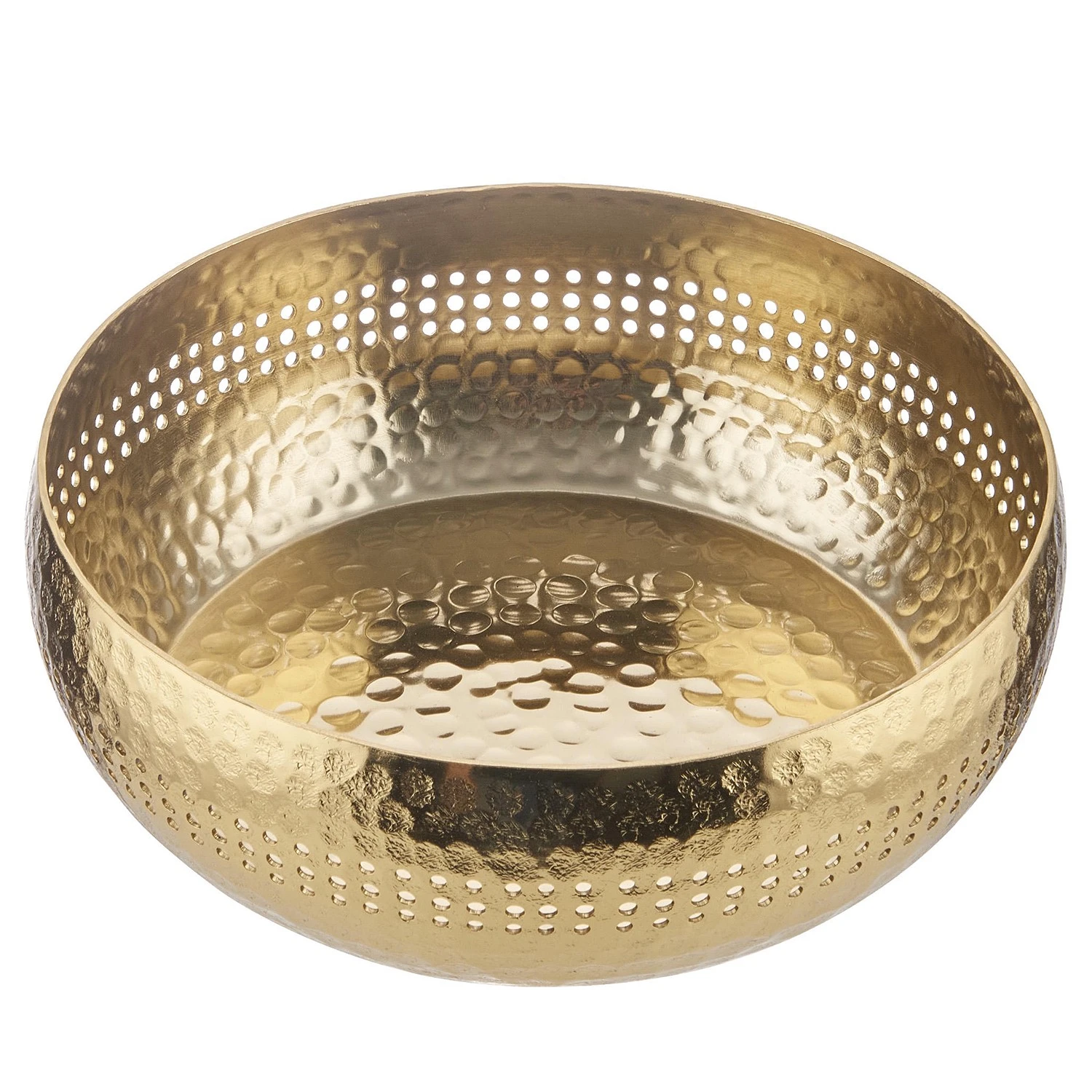 - Weitere Qualitätsmerkmale: Detailverliebte Handwerkskunst hat eine lange Tradition auf Bali, und daran knüpft die exotische Bali Deko Schale mit Lochrand an. Sie ist aus Aluminium in Gold gefertigt und zusätzlich mit einem aufwändigen Hammerschlag-Muster versehen, das dezente Lichtreflexe entstehen lässt. So wird die Schale zum dekorativen Hingucker auf dem Tisch oder Sideboard, auch in Kombination mit der Bali bauchige Metall Vase in Gold. Nur zu Dekozwecken.