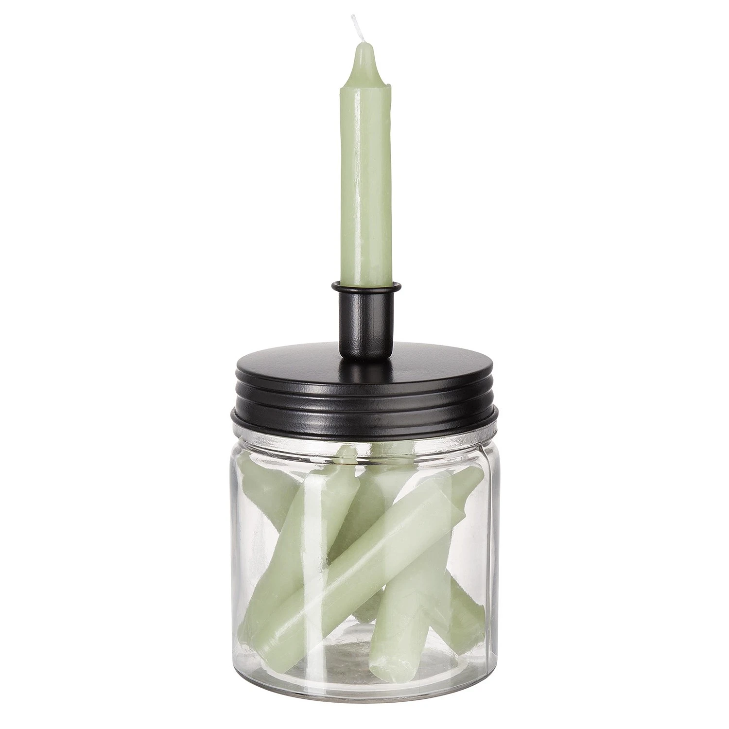 - Weitere Qualitätsmerkmale: Raffiniert: Das Candle Jar Glas mit Kerzenhalter setzt dem Aufbewahrungsglas für Little Light Kerzen noch einen drauf: Auf dem Deckel aus schwarzfarbenem Metall kann eine der sieben salbeifarbenen Little Light Kerzen befestigt werden. Sobald sie abgebrannt ist, ist Nachschub ohne langes Suchen griffbereit. Ganz schön praktisch dieses 2-teilige Set – und dekorativ sowieso.
