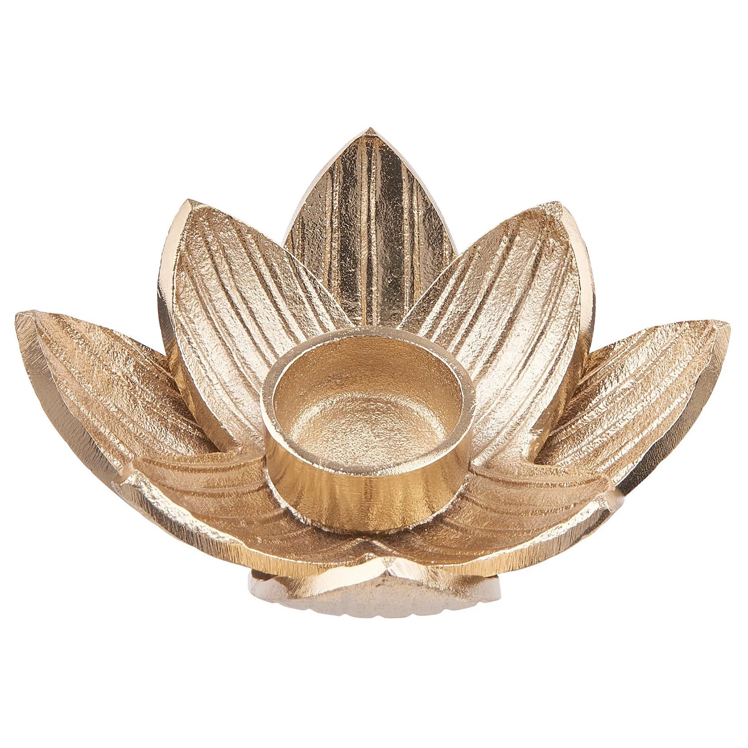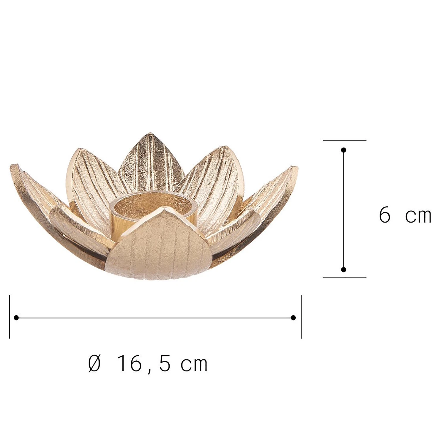 - Weitere Qualitätsmerkmale: Luxuriöses Gold und exotisches Dschungelfieber – wenn diese beiden Trends gemeinsame Sache machen, kann das Ergebnis nur ein echter Blickfang sein. So wie bei dem Golden Nature Teelichthalter Lotus in Gold aus Aluminium. Da haben Sie doch sicher schon eine Idee, wo dieses Schmuckstück bei Ihnen für Aufsehen sorgen darf.