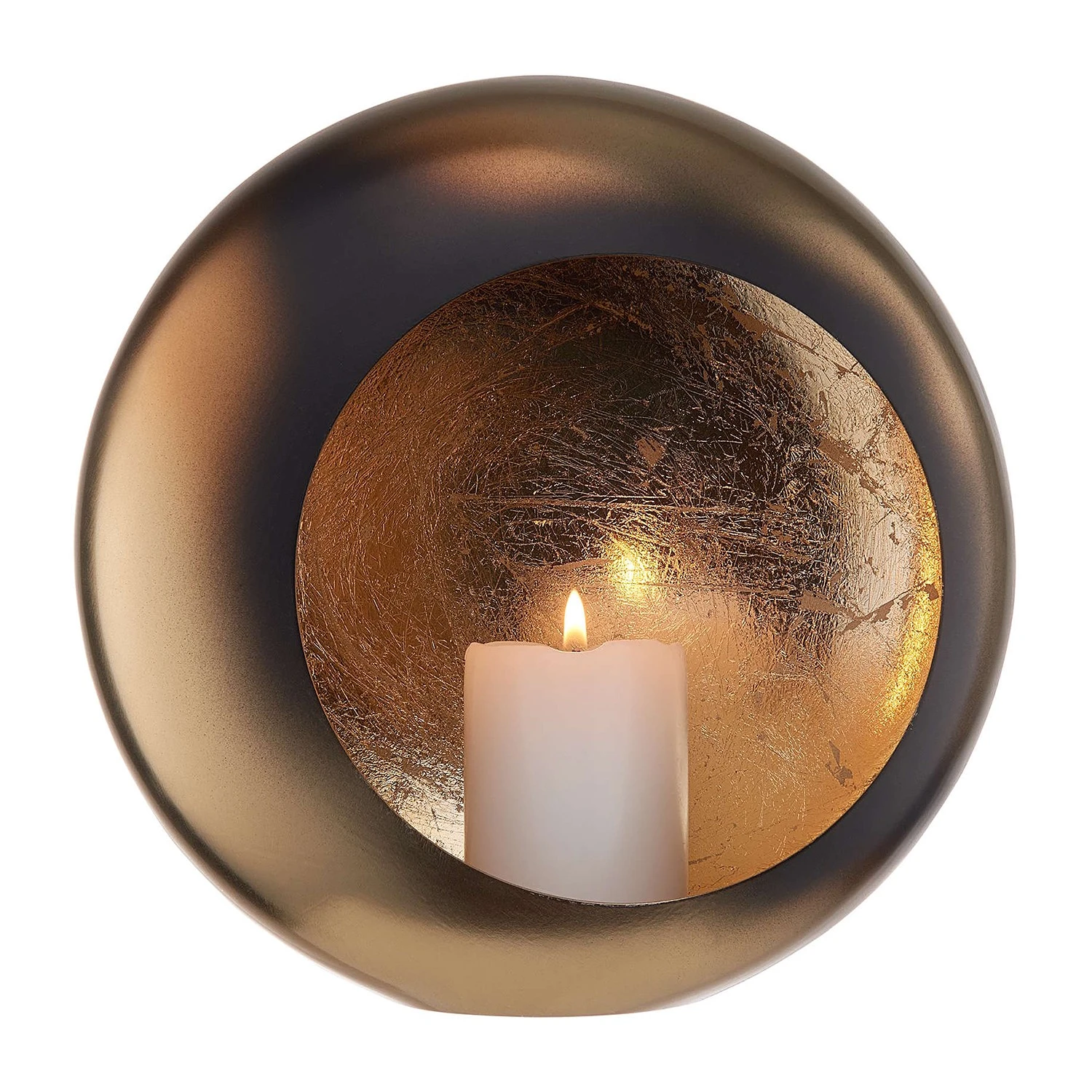 - Weitere Qualitätsmerkmale: Der handgefertigte Moon Teelichthalter aus Eisen wirkt schon auf den ersten Blick als dekorative Skulptur. Mit Kerzenschein verwandelt er sich dann in ein funkelndes Highlight: Die halbmondartige Form und das gebrochene Vintage-Gold im Inneren zaubern faszinierende Lichteffekte herbei. In einer weiteren Größe erhältlich, ideal auch zum Kombinieren.