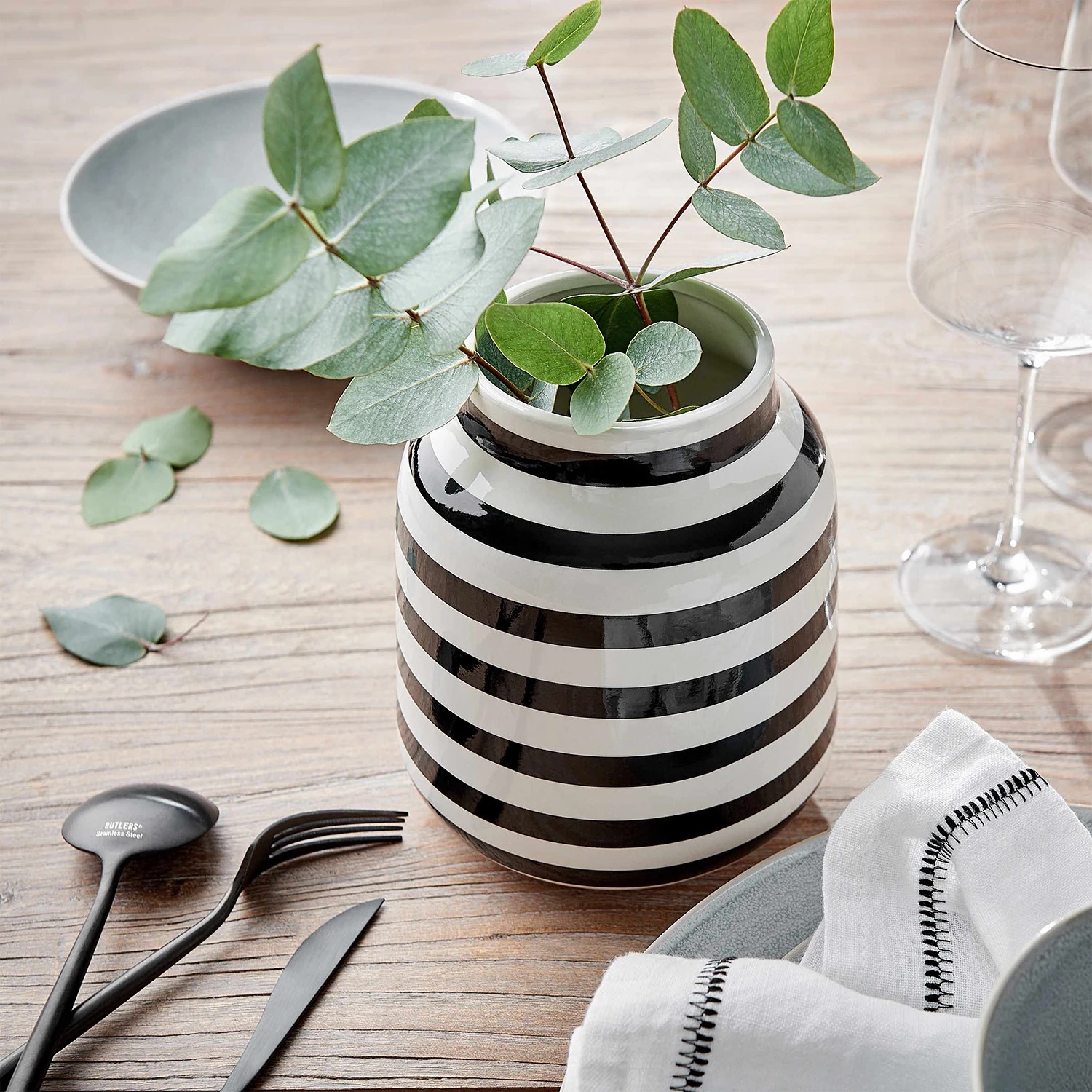 - Weitere Qualitätsmerkmale: Tapetenwechsel ohne Renovieren: Mit der gestreiften Malika Vase aus Keramik in Schwarz-Weiß für Blumen-Dekos und den gedeckten Tisch bekommt Ihr Zuhause im Handumdrehen einen frischen Look. So setzen Sie z. B. farbige Akzente oder sorgen hier und da für einen schönen Hingucker.