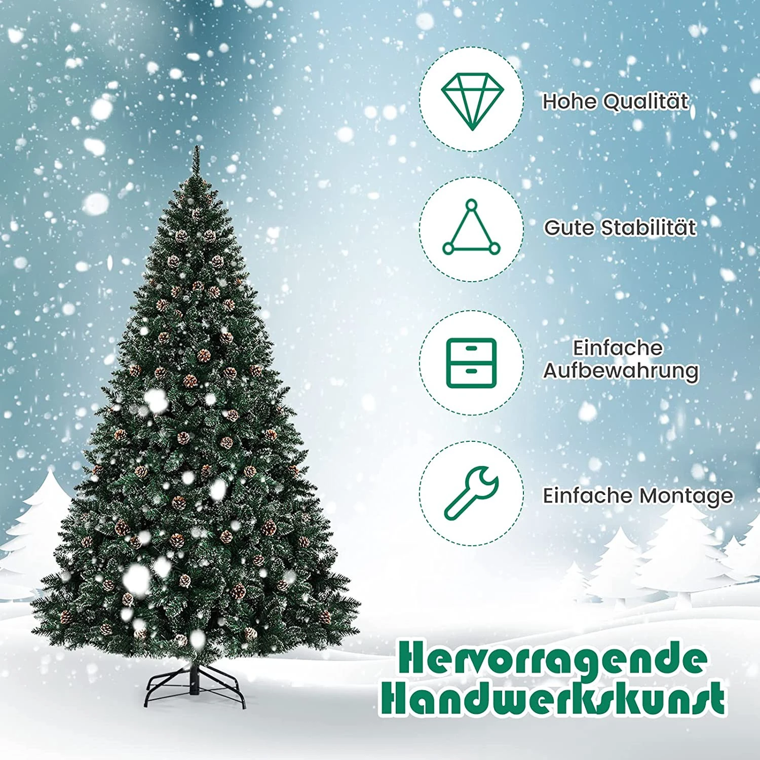 - Lieferumfang: 1 x Künstlicher Weihnachtsbaum;1 x Metallständer;1 x Anleitung
