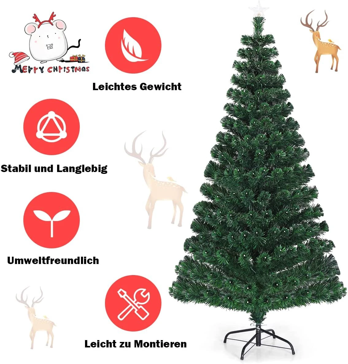 - Lieferumfang: 1 x Weihnachtsbaum;1 x Ständer;1 x Anleitung
