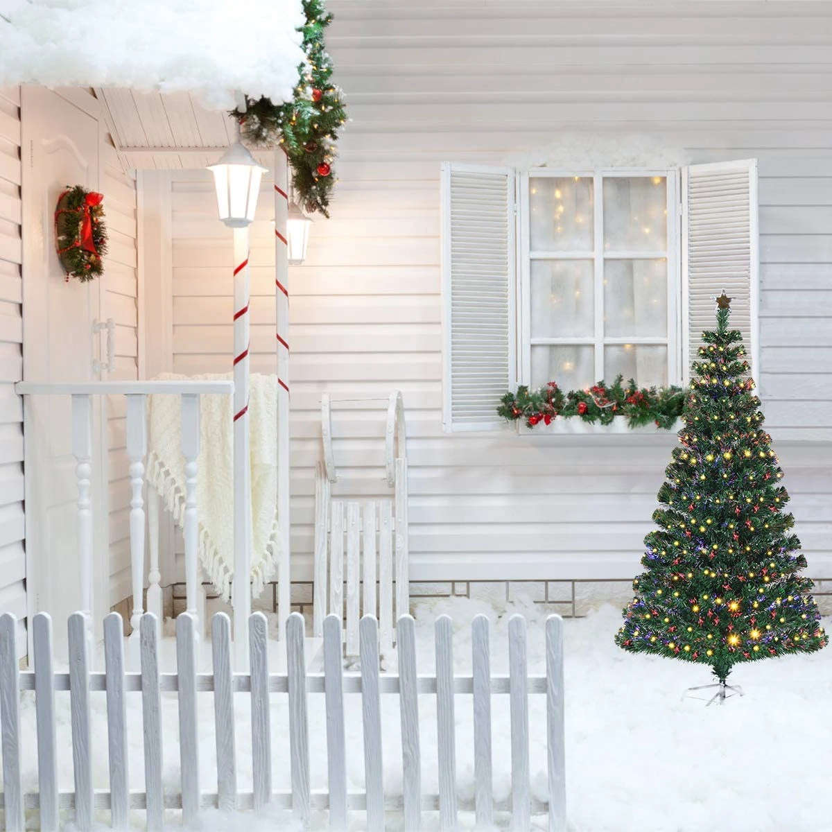 ????【Bereits Beleuchtetes Design】Dieser Weihnachtsbaum ist mit Lichtleitfaser Schläuchen und 180 LEDs ausgestattet, wodurch er einen strahlenden Beleuchtungseffekt bei Nacht besitzt, was ihn zu einem wahren Blickfang macht. Diese LED Lichter mit warm-weißer Farbe sind energieeffizient und langlebig, für die Dekoration während der gesamten Weihnachtszeit. Die Lichtleitfaser wird die festliche Atmosphäre in Ihrem Raum noch verstärken.