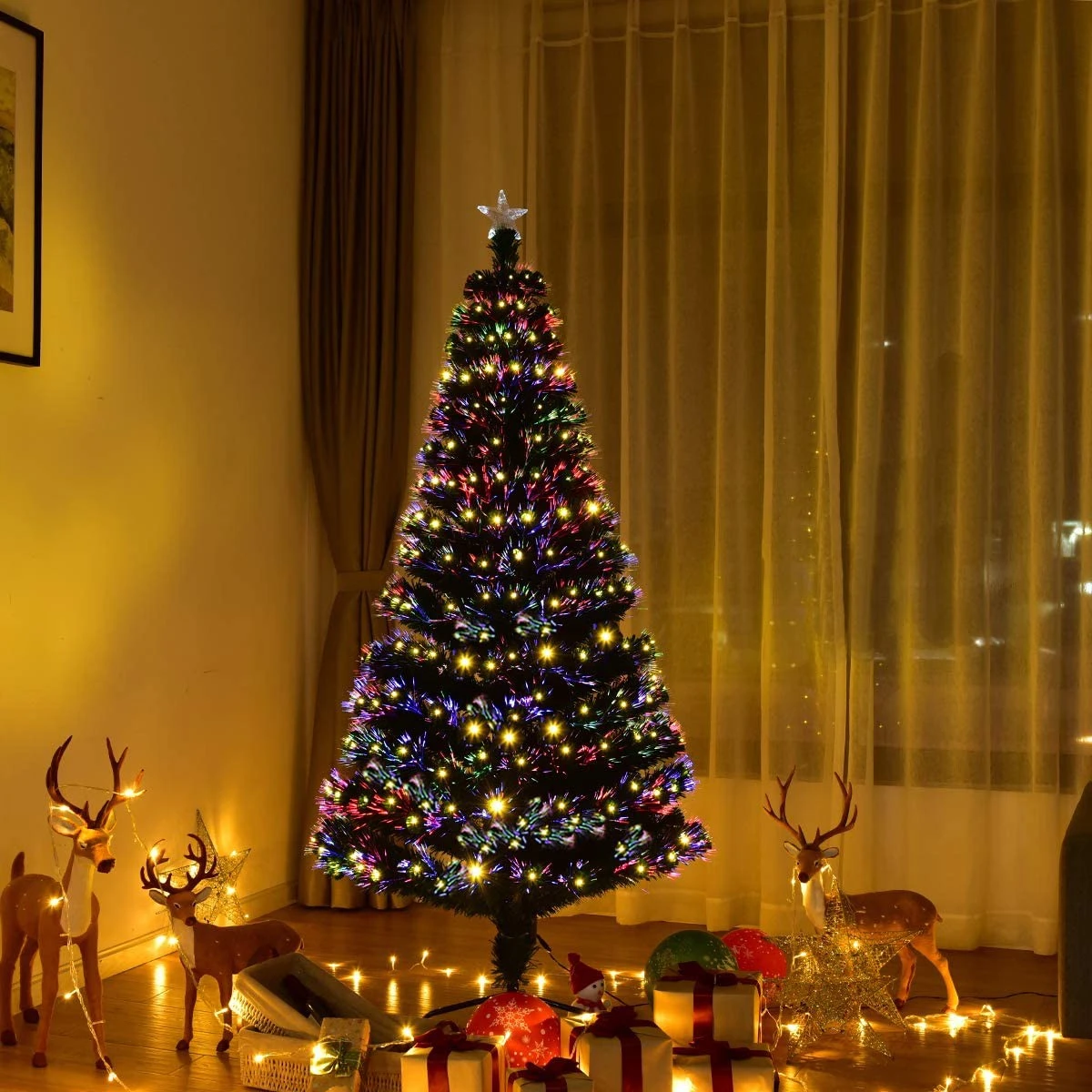 ????【8 Blink Modi】Ausgestattet mit 8 verschiedenfarbigen Blink Modi, kann dieser bereits beleuchtete Weihnachtsbaum eine Vielzahl an Lichteffekten darstellen, wie verschieden Kombinationen, Wellen, sequenzielles Blinken, Aufblitzen und so weiter. Sie können den angemessenen Modus wählen, indem Sie den Knopf verwenden, woraufhin sich ebenfalls die Farbe der Lichtleitfaser verändern wird.