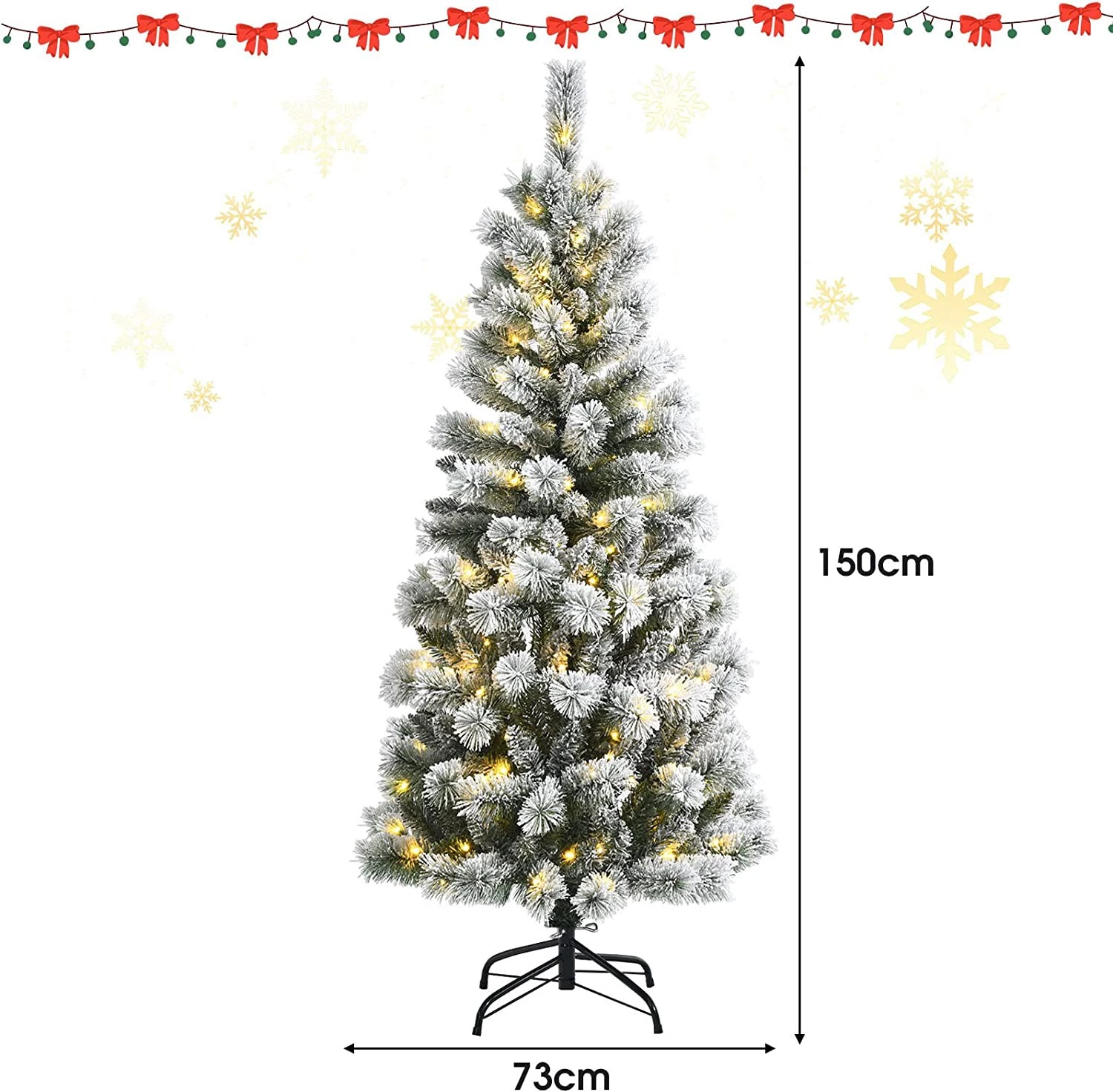 Unser 150cm hoher Weihnachtsbaum ist eine tolle Wahl. Er hat 279 verschneite Zweige, die ihm ein dichtes und üppiges Aussehen verleihen. Er besteht aus zu 100% neuem PVC, und ist dadurch geruchlos, feuerfest und ungiftig. Die 140 LED-Lichter mit 9 Modi garantieren eine einzigartige Beleuchtung. Egal was für eine Atmosphäre Sie gerne hätten, mit der Fernbedienung können Sie die Einstellung ganz einfach vornehmen. Das Klappdesign erleichtert Ihnen den Aufbau. Stellen Sie den Baum zuhause, im Büro und auf Feiern auf und genießen Sie die Stimmung!