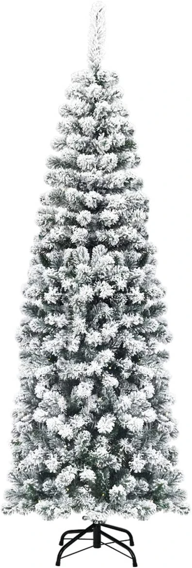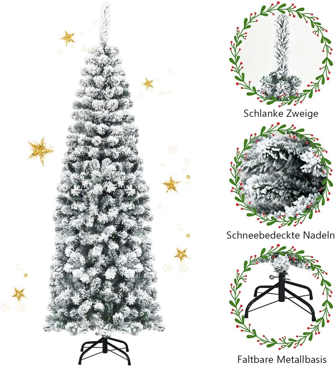 【Schneebedeckter Bleistift-Weihnachtsbaum】 Mit 500 Zweigen ist dieser 180cm große Weihnachtsbaum voll und elegant. Er vermittelt ein einzigartiges winterliches Gefühl.Durch sein schlankes Bleistift-Design ist er platzsparend und geeignet zum Aufstellen in Ecken und Zimmern mit wenig Platz.
