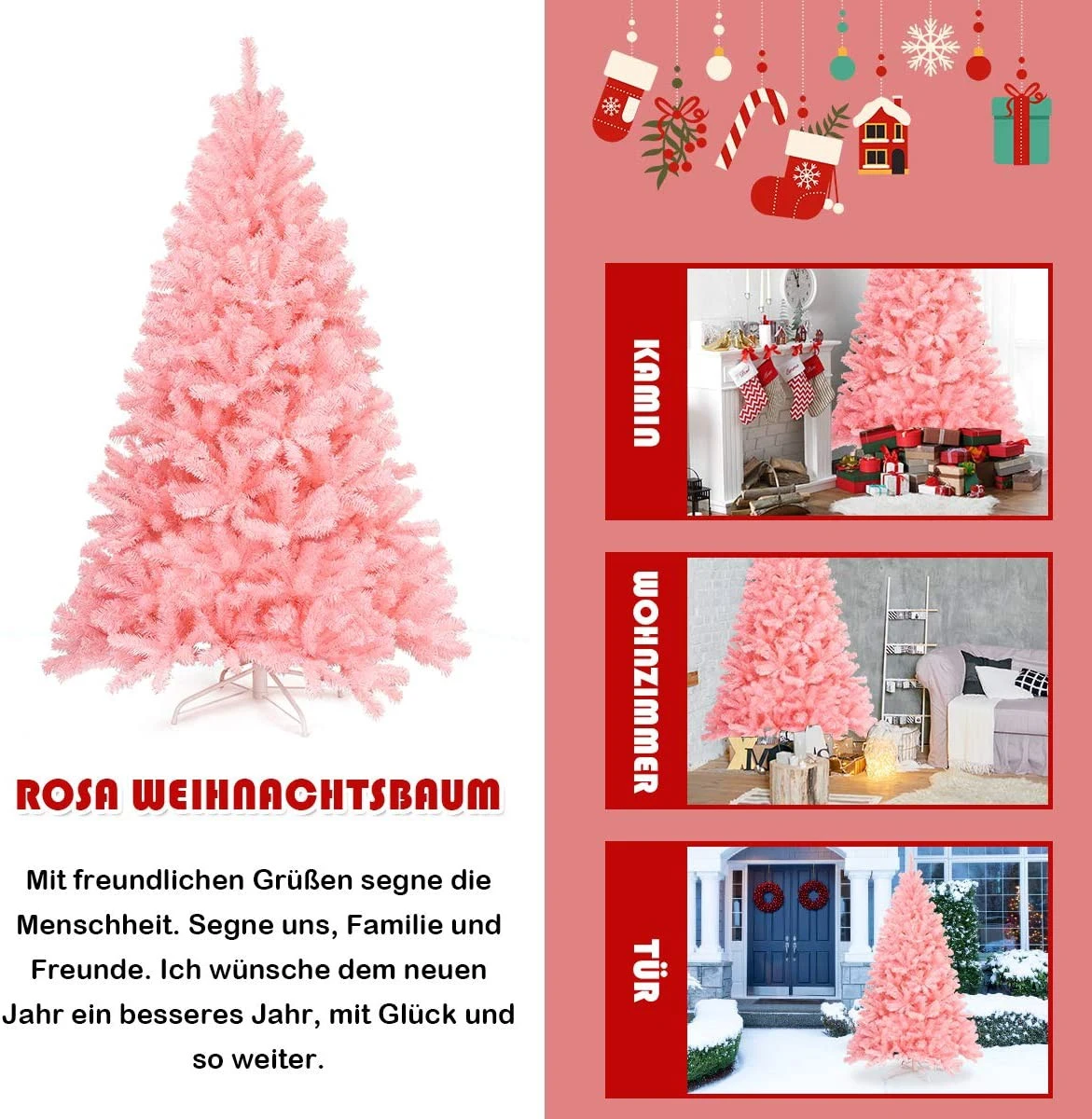 Sind Sie es leid, Ihr Zuhause mit einem generischen grünen Weihnachtsbaum zu schmücken, und auf der Suche nach einem einzigartigen Ersatz für dieses Jahr? Dieser rosafarbene Weihnachtsbaum wird Sie nichtenttäuschen. Er ist perfekt für Haus, Geschäft, Kirche, Café und mehr. Er ist auffällig durch sein pinkes Fichtendesign und die volle Form. Auch die Sicherheit spielt eine wichtige Rolle, aus diesem Grund wird 100 % neues, hochwertiges PVC-Material anstelle von recyceltem Material verwendet. Es ist geruchlos, nicht brennbarund bietet Ihnen in der Weihnachtszeit ein ideales Nutzungserlebnis. Sie brauchen sich keine Gedanken darüber zu machen, wie es allein zusammenbaut werden kann, da er aus klappbaren Abschnitten besteht, die eine superleichte Montage ermöglichen. Er steht dank des mitgelieferten robusten Metallständers die ganze Saison über aufrecht. Bringen Sie diesen Weihnachtsbaum mit nach Hause und erschaffen Sie eine einzigartige Weihnachtsstimmung.