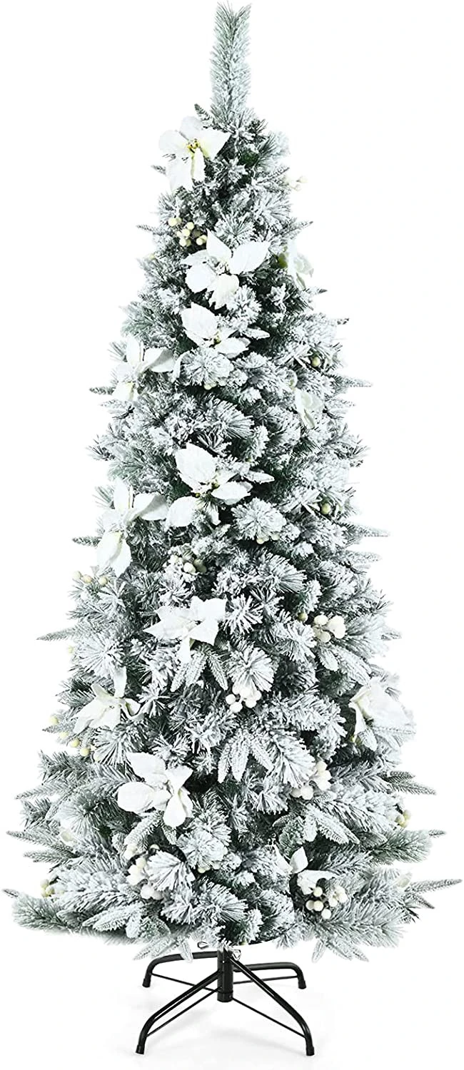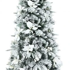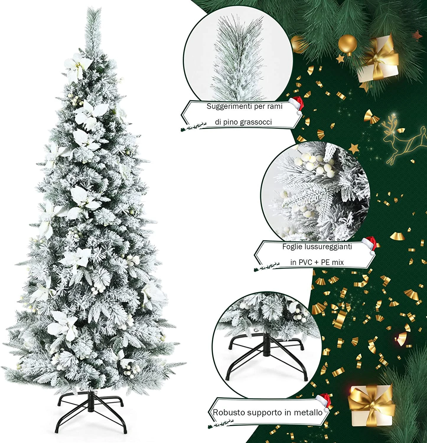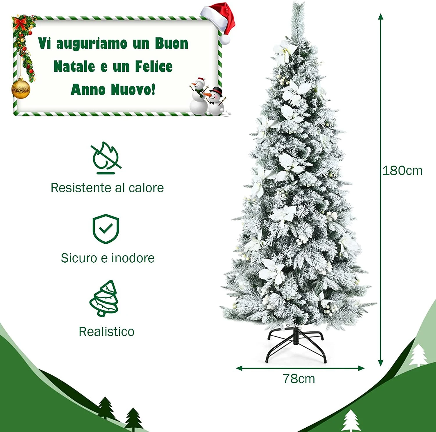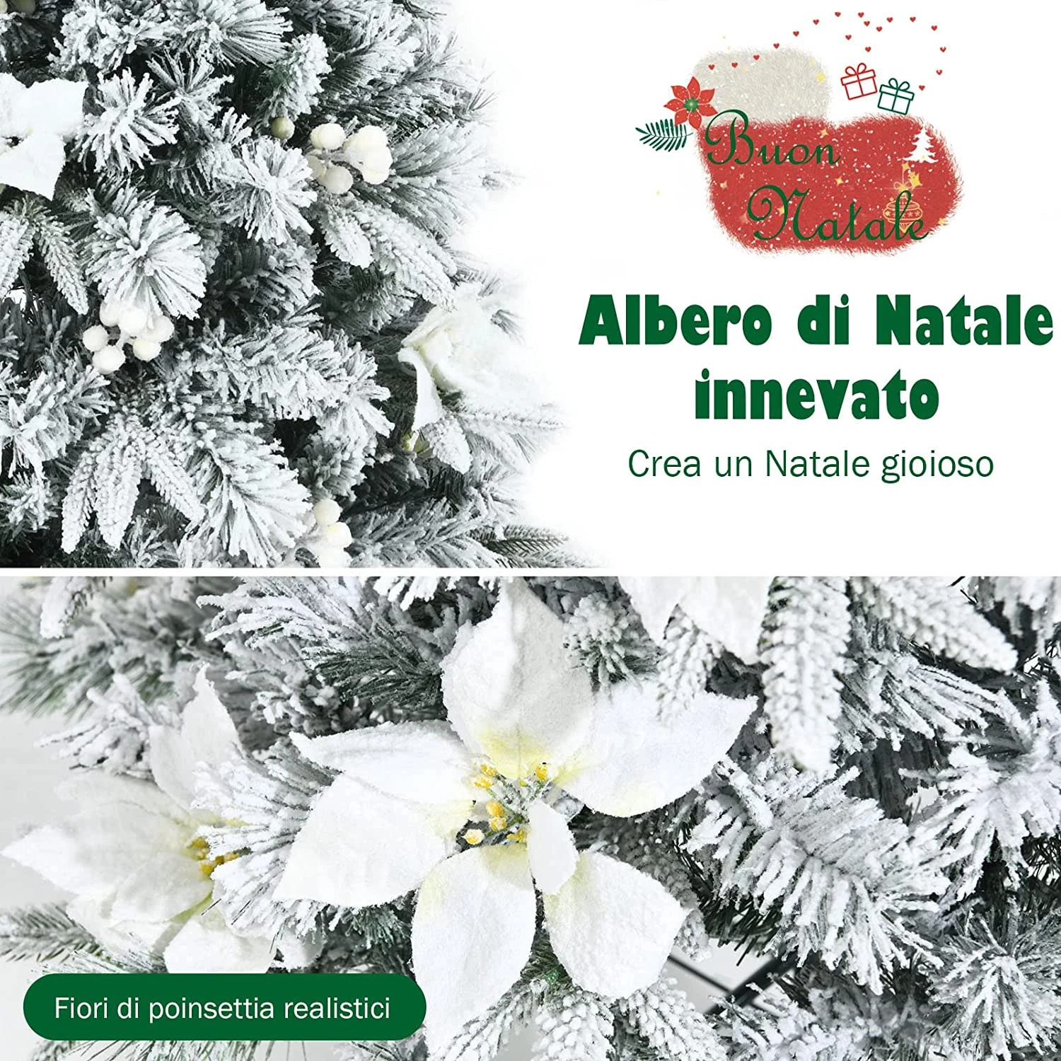 【Verschneite Zweige & hübsche Details 】Der 180cm hohe Baum wird nicht nur üppig von Kunstschnee geschmückt, sondern auch von 300 weißen Beeren und eleganten weißen Weihnachtssternen, wodurch er sehr winterlich wirkt.