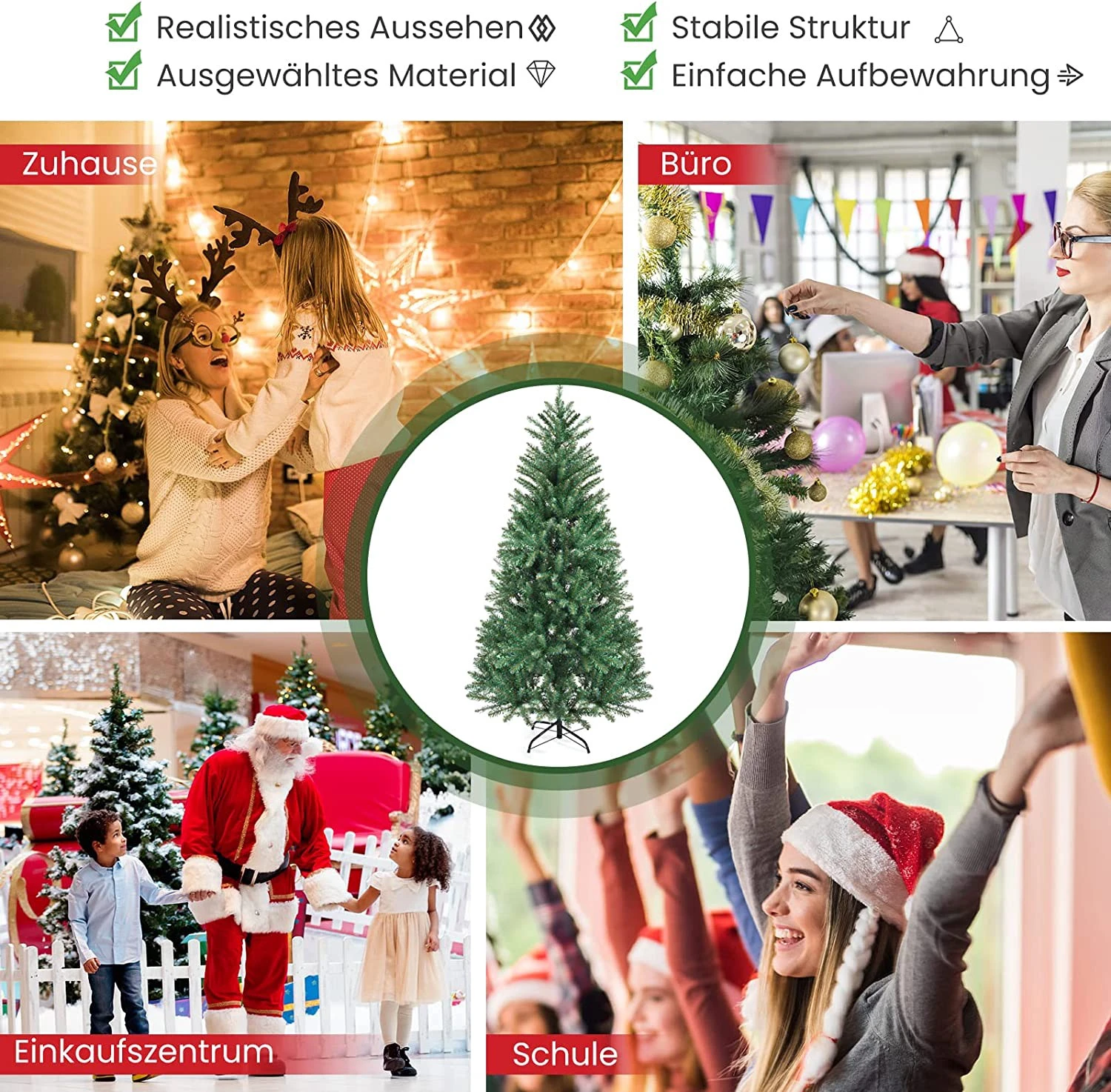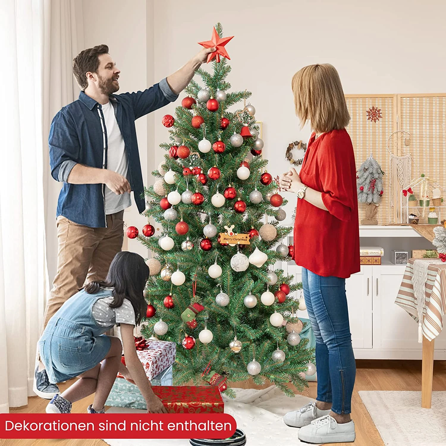 ????【Dichte und realistische Äste】 Der künstliche Weihnachtsbaum ist so gestaltet, dass er das Aussehen einer Fichte nachahmt. Seine Äste sind 5 cm breit und 18 cm lang und sehen realistisch aus und fühlen sich auch so an. Und er besteht aus 825 Astspitzen, die einen breiten und dicken Stamm mit viel Platz für Dekorationen bilden.