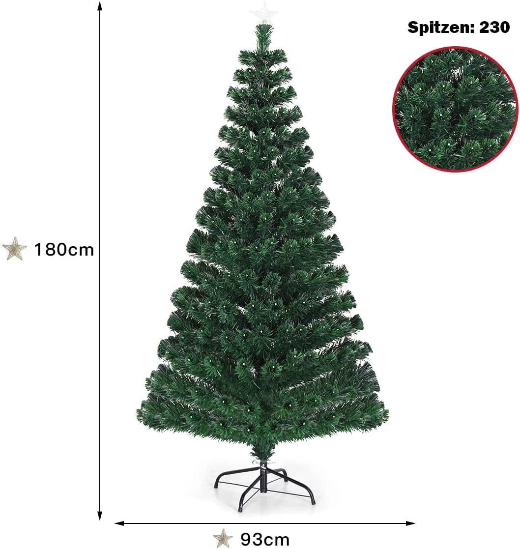 ????【Bereits Beleuchtetes Design】Dieser Weihnachtsbaum ist mit Lichtleitfaser Schläuchen und 180/230 LEDs ausgestattet, wodurch er einen strahlenden Beleuchtungseffekt bei Nacht besitzt, was ihn zu einem wahren Blickfang macht. Diese LED Lichter mit warm-weißer Farbe sind energieeffizient und langlebig, für die Dekoration während der gesamten Weihnachtszeit. Die Lichtleitfaser wird die festliche Atmosphäre in Ihrem Raum noch verstärken.
