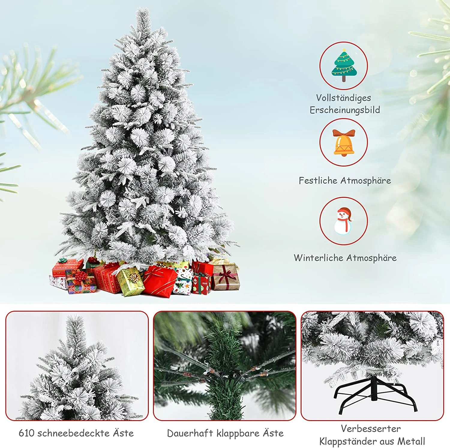 【Verschneite Zweige für Wintercharme】Mit seinen 610 dichten Zweigen hat der künstliche Weihnachtsbaum eine üppige und realistische Optik. Außerdem sorgen die verschneiten Zweige für eine winterliche Stimmung.