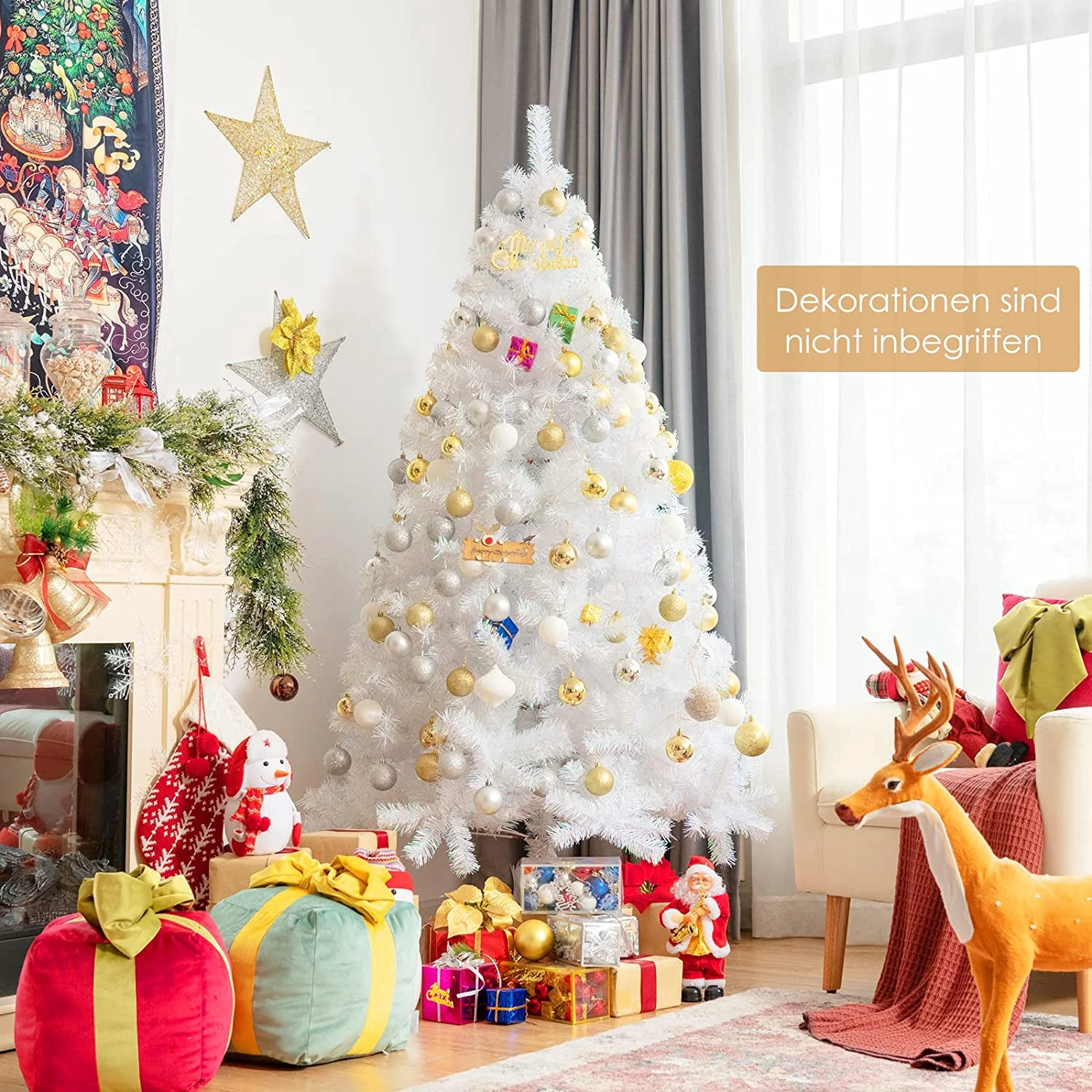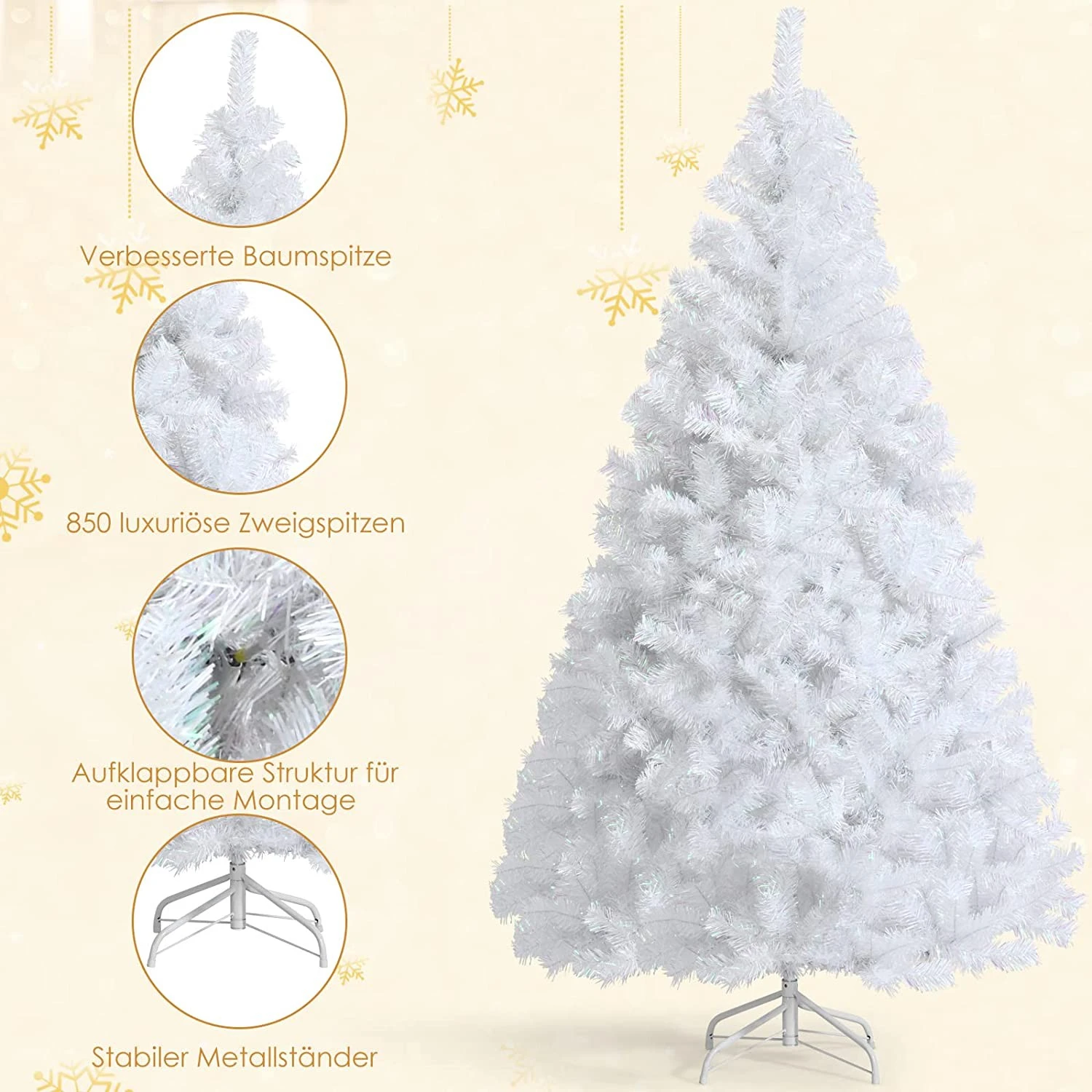 - Lieferumfang: 1 x Weißer Weihnachtsbaum;1 x Metallständer