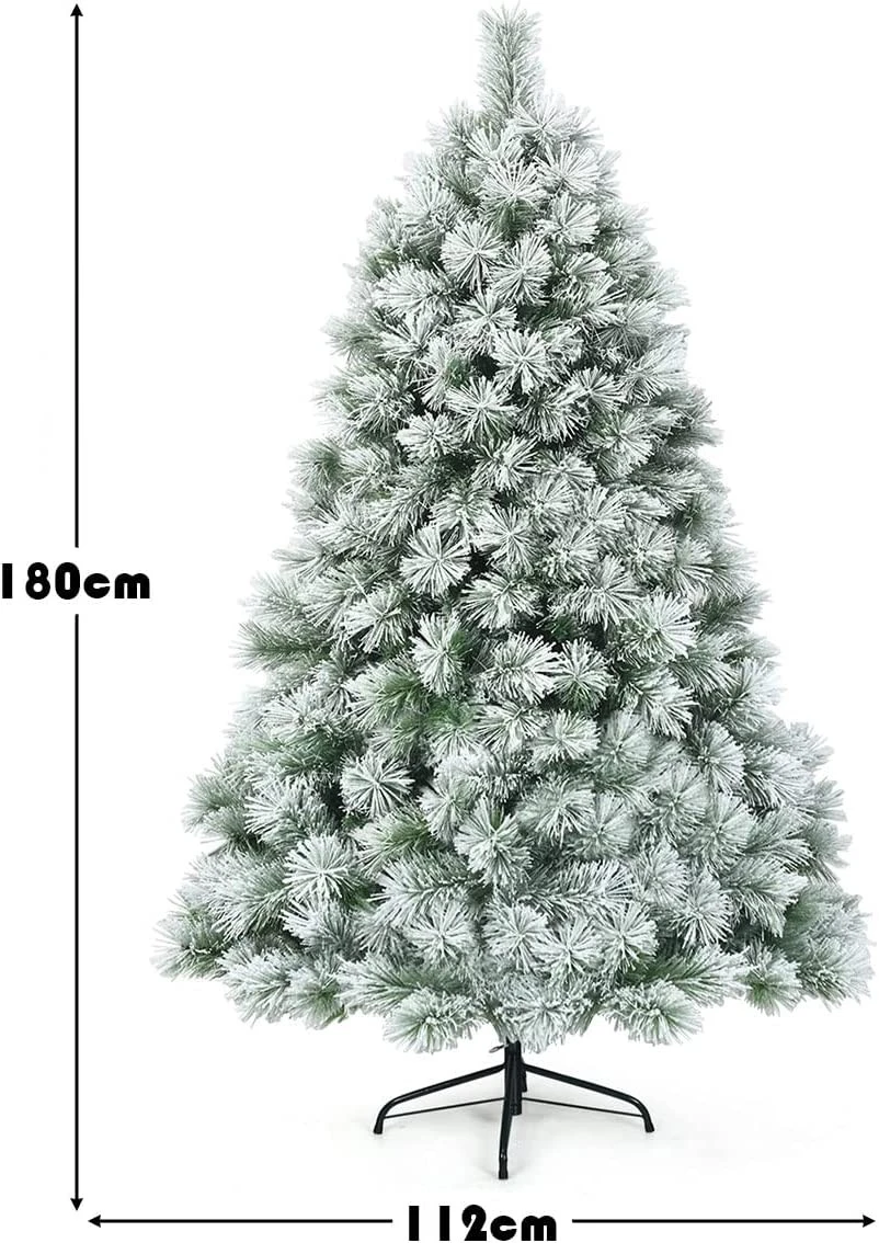 Bringen Sie mit der verschneiten künstlichen Weihnachtskiefer eine festliche Atmosphäre in Ihr Zuhause. Dieser Weihnachtsbaum eignet sich perfekt für den privaten oder gewerblichen Gebrauch und verleiht jedem Raum ein festliches Ambiente. Er ist 180 cm hoch, hat 586 Zweige und ist eine tolle Dekoration, mit der Sie die Weihnachtsstimmung in Ihrem Zuhause spüren können. Dank der klappbaren Zweige lässt er sich in Minutenschnelle superleicht auf- und abbauen. Darüber hinaus ist er durch das zu 100 % neue, hochwertige PVC nicht nur geruchlos, sondern auch langlebig. Er wird auch mit einem stabilen Eisenständer geliefert, sodass ergeradestehen kann, ohne umzufallen. Bringen Sie diesen verschneiten Tannenbaum zu sich nach Hause und fühlenSie sich wie im Winterwunderland.