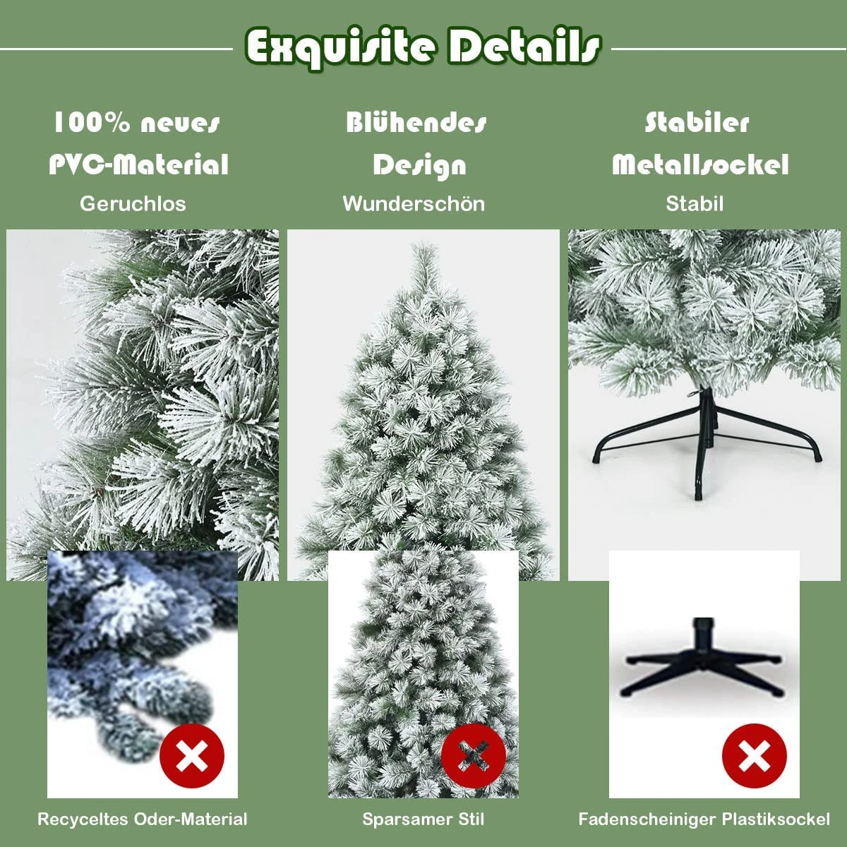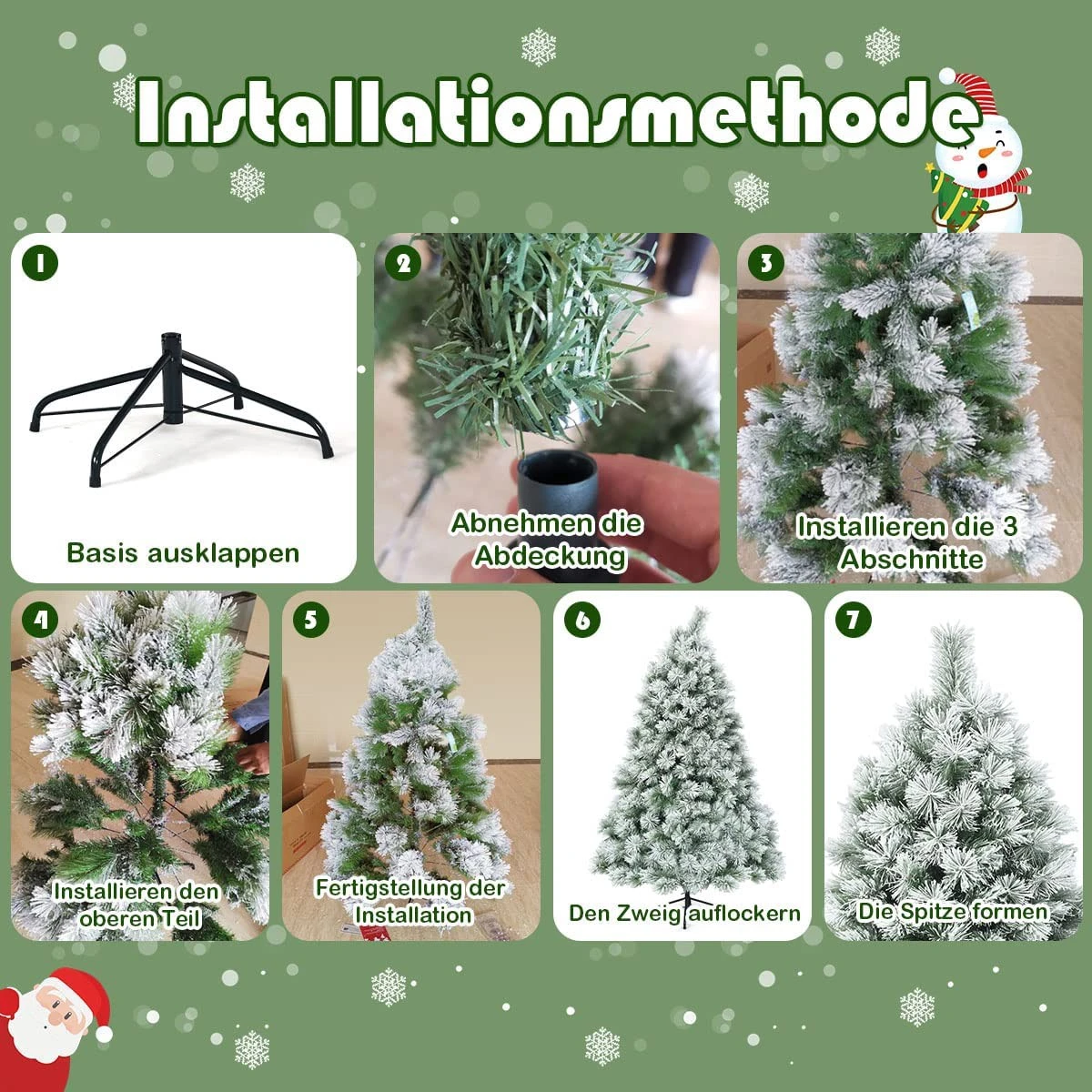 【Schöne verschneite Tannennadeln】 Der verschneite undgutverarbeitete Weihnachtsbaum besticht durch sein tolles Aussehen, und Sie sich wie im Winterwunderland fühlen. Die vielen Tannennadeln verleihen dem künstlichen Weihnachtsbaum ein volles, naturgetreues und üppiges Aussehen.