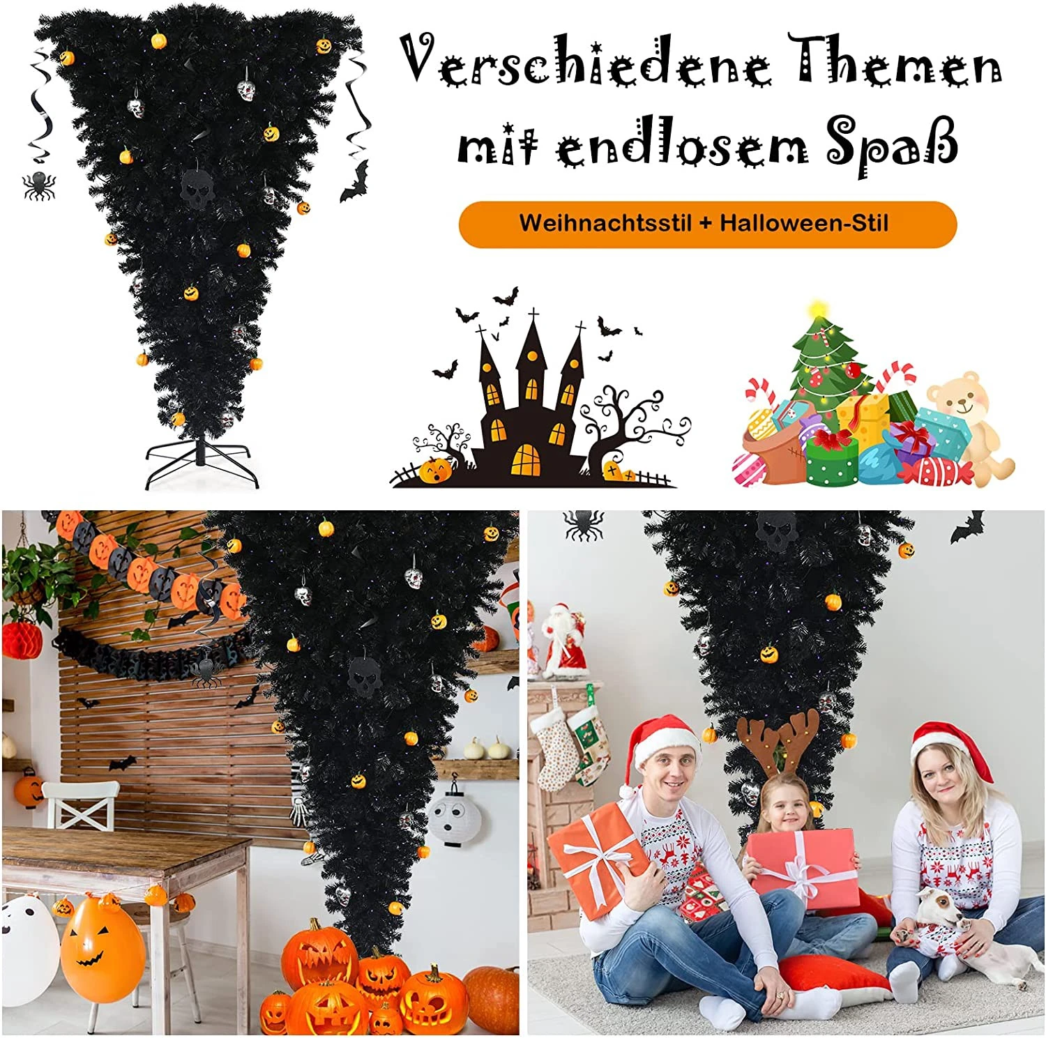 【Auf dem Kopf stehendes Design】 Dieser auf dem Kopf stehende Baum wird ein einzigartiger Hingucker auf Partys sein. Durch seine einzigartige Form nimmt er wenig Bodenfläche ein, wodurch er ideal für kleine Räumlichkeiten ist.