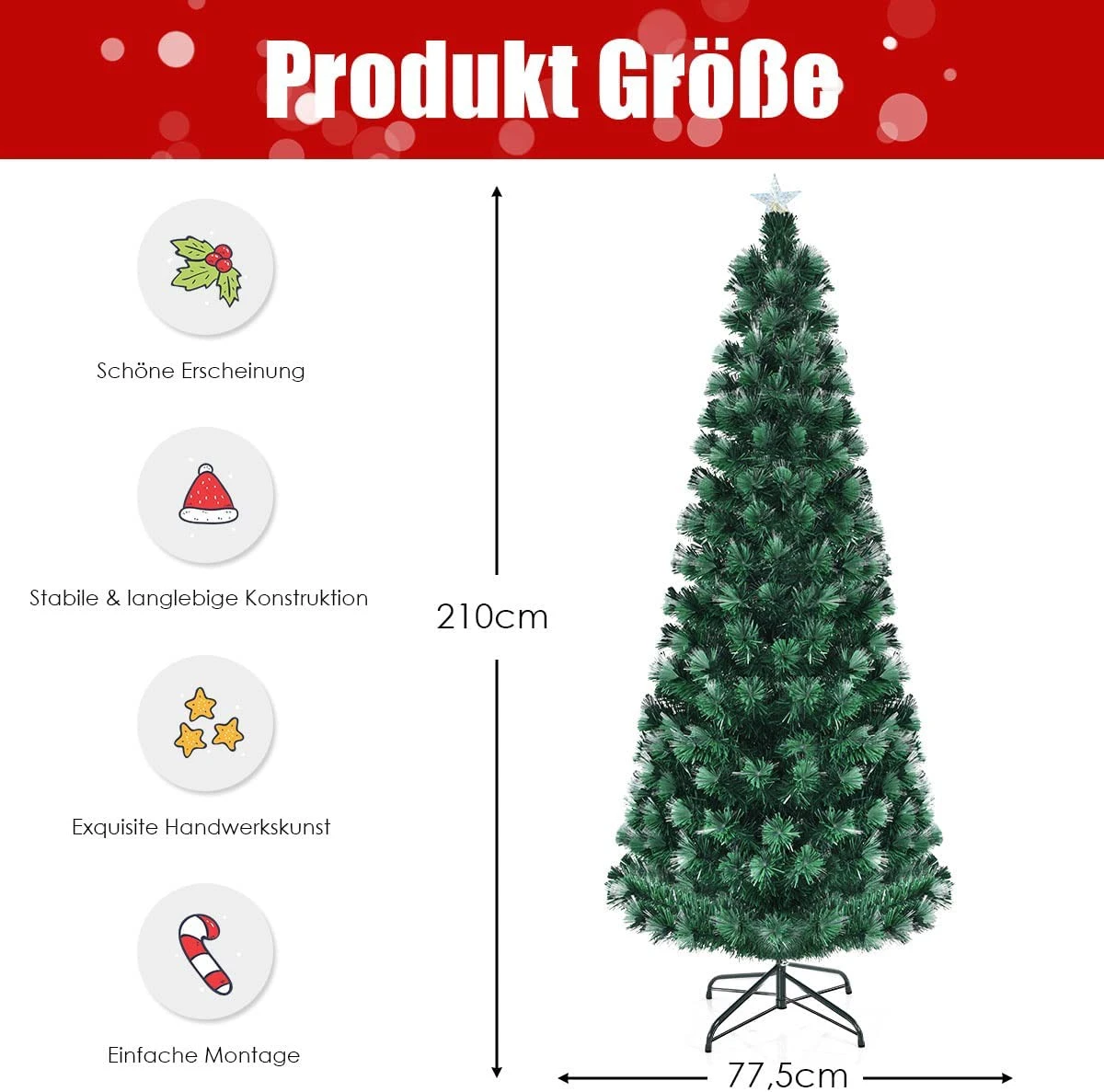 【7 Lichtfarben】 Der beleuchtete Weihnachtsbaum von COSTWAY verfügt über 7 verschiedene farbige Licht, die zufällig wechseln kann. Achtung: Die Lichtfarben können nicht eingestellt werden.