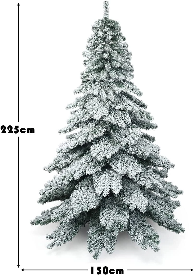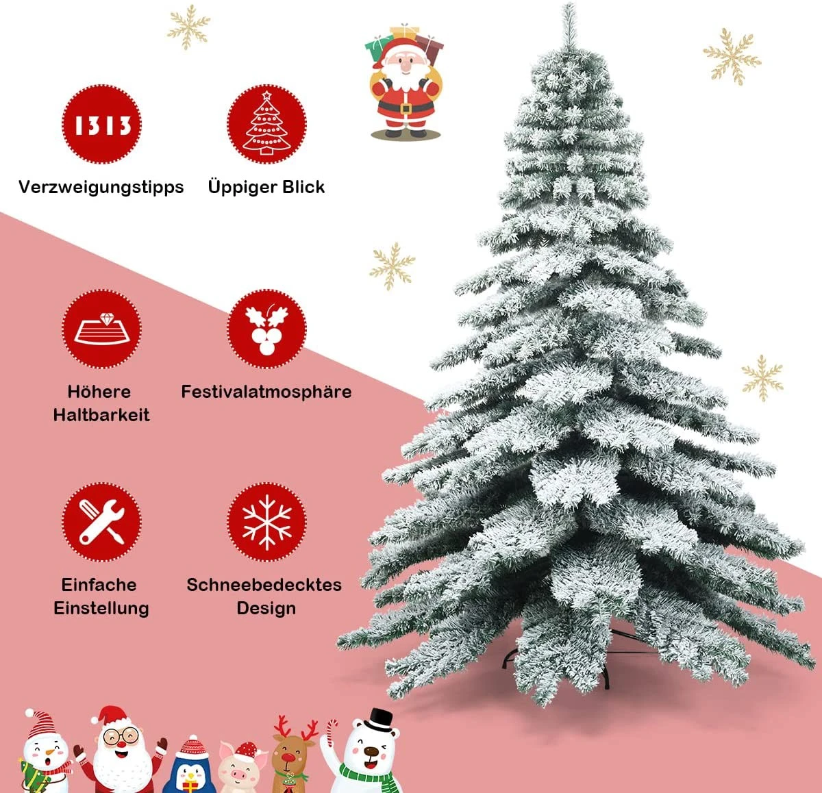 Bringen Sie mit dem schneebedecktem Weihnachtsbaum eine festliche Atmosphäre in Ihr Zuhause. Dieser Weihnachtsbaum eignet sich sowohl für den privaten als auch für den gewerblichen Bereich und bringt die Festtagsstimmung in jeden Raum. Er ist 225 cm hoch, mit 1313 Zweigen, hat eine volle Form und ist eine hübsche Dekoration, die Sie in Weihnachtsstimmung bringt. Sein Aussehen ist an das einer echten Kiefer angelehnt. Dank der klappbaren Zweige lässt er sich in Minuten superleicht auf- und abbauen. Mehr noch, durch das 100% neue, hochwertige PVC-Material ist der Weihnachtsbaum nicht nur geruchsfrei, sondern auch geeignet für einen langfristigen Gebrauch. Er wird auch mit einem stabilen Metallständer geliefert, so dass ergeradestehen kann, ohne umzufallen. Nehmen Sie diesen hübschen Tannenbaum mit nach Hause und Sie werden sich wie in einem verschneiten Wunderland fühlen.