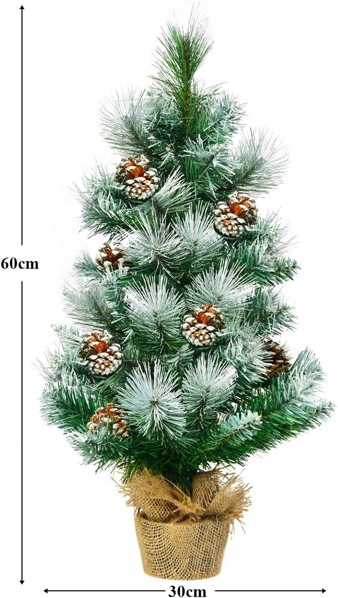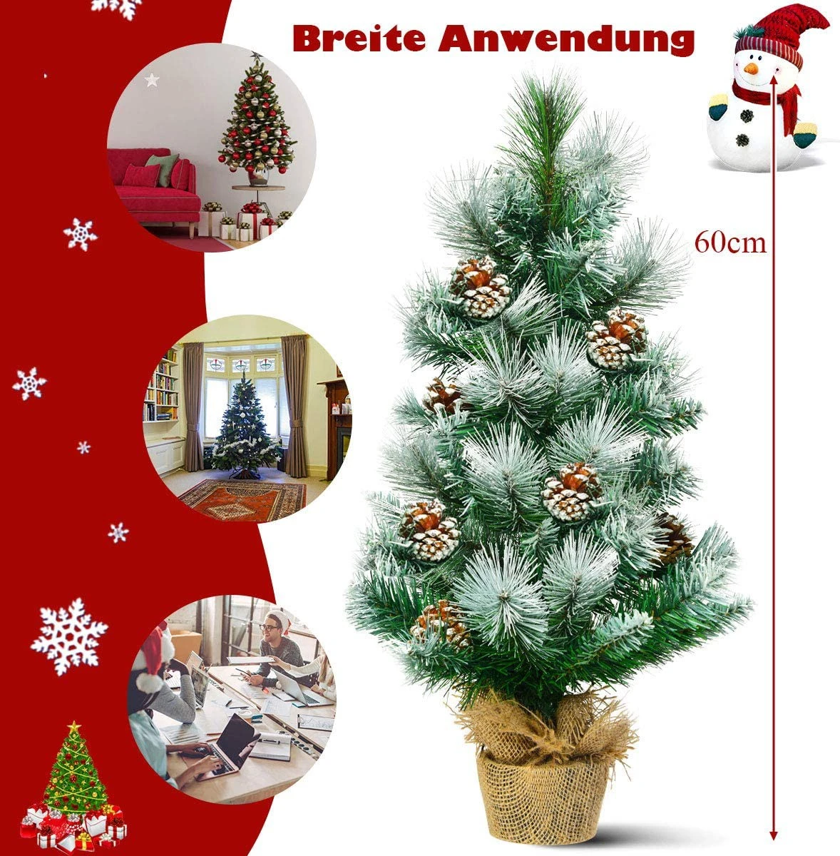 Sind Sie auf der Suche nach Mini-Weihnachtsbäumen für Ihre Weihnachtsdekoration? Dieser künstliche Miniatur-Weihnachtsbaum ist nur 60 cm groß und eignet sich perfekt, um Zimmer, Tisch, Büroschreibtisch und jeden kleinen Raum zu zieren. Er zeichnet sich durch seine klassische grüne Farbe, viele schneebedecktenNadeln und Tannenzapfen aus.Er wird mit einem Sockel aus Zement geliefert, der für die allgemeine Stabilität sorgt. Es ist kein Zusammenbau erforderlich und Sie müssen nur Ihre Lieblingsdekoration an den Baum hängen. Stellen Sie diesen Weihnachtsbaum in Ihr Zuhause und erleben Sie in frohes Fest!