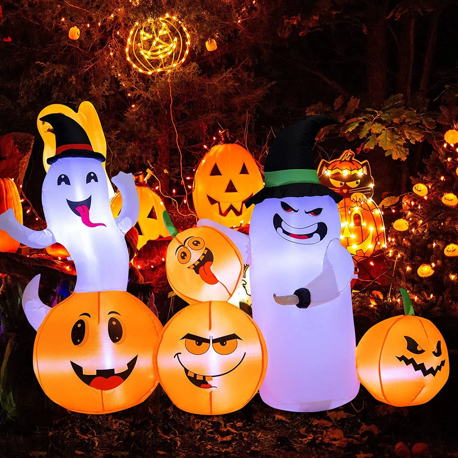 【Auffälliges LED-Licht】 Als ein Muss für Halloween-Nachtdekorationen wird die aufblasbare Kürbis- und Geister-Kombination ein großer Hit unter den Partygästen und Kindern. Die 6 eingebauten LED-Leuchten machen nachts jedes Element sichtbar und schaffen ein herrliches Feiertagsambiente, um alle aufzumuntern.