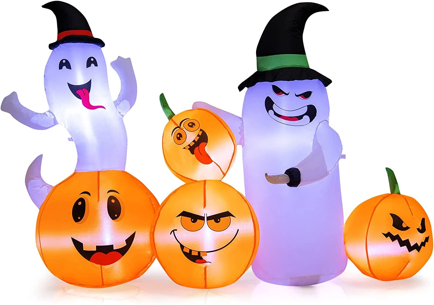 Die 2 Geister und 4 Kürbisse in einer Reihe sind eine gute Wahl, wenn Sie den Hof für das kommende Halloween dekorieren. Jeder Geist und jeder Kürbis sind unterscheidbar und ein Blickfang, besonders wenn die Nacht hereinbricht und die LED-Lichter jedes Element erhellen. Was die Montage betrifft, können Sie sicher sein, dass nur wenige Schritte erforderlich sind. Da ein wasserdichtes Gebläse enthalten ist, müssen Sie sich nicht einmal die Mühe machen, andere Aufblaswerkzeuge vorzubereiten. Darüber hinaus sind die 5 Erdspieße und 5 Seile so konzipiert, dass Sie die leichte aufblasbare Dekoration befestigen können. Erwähnenswert ist auch, dass der befestigte Sandsack auch zur Stabilisierung der Dekoration beiträgt.