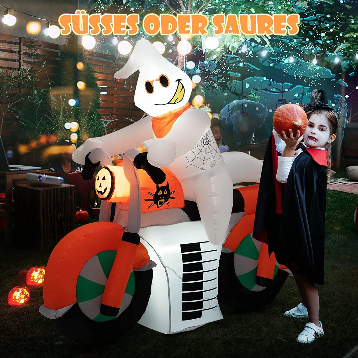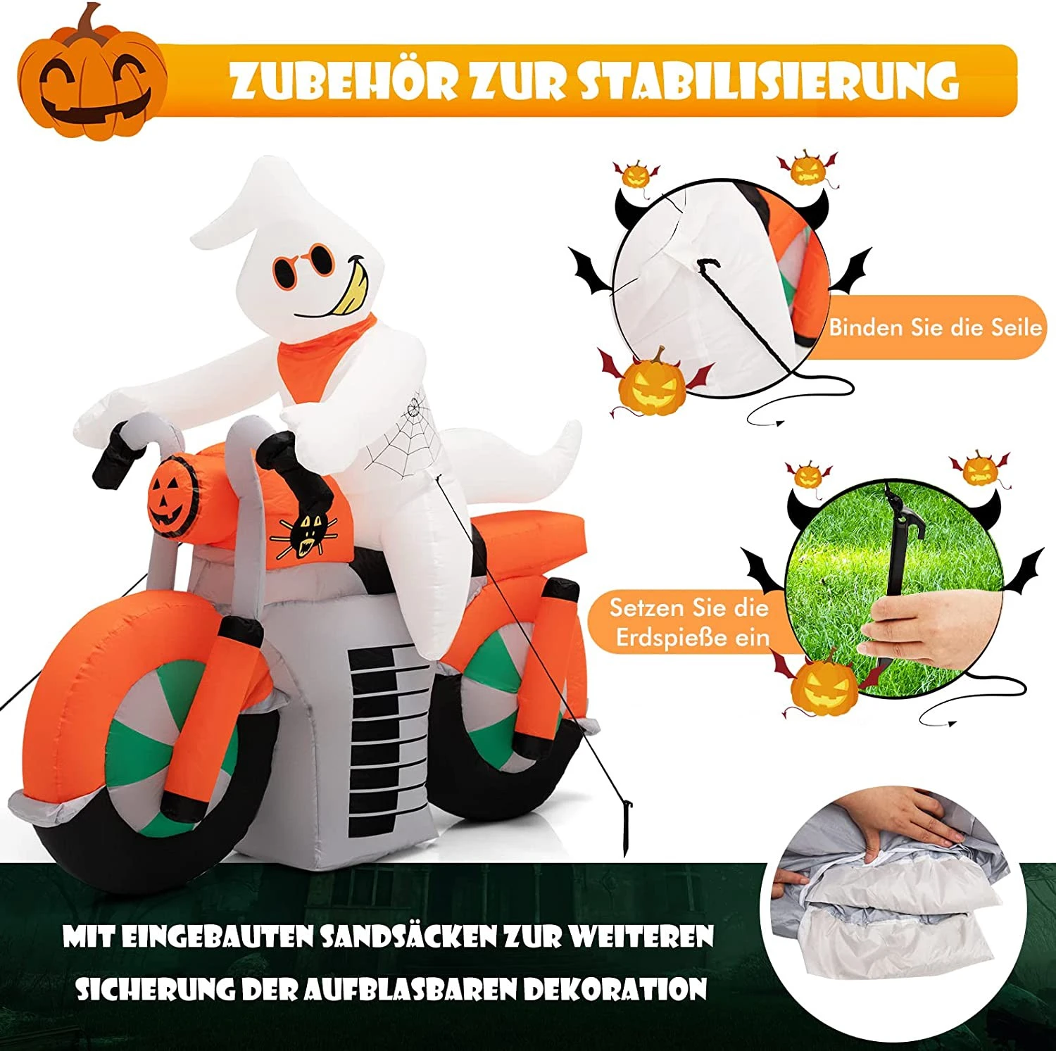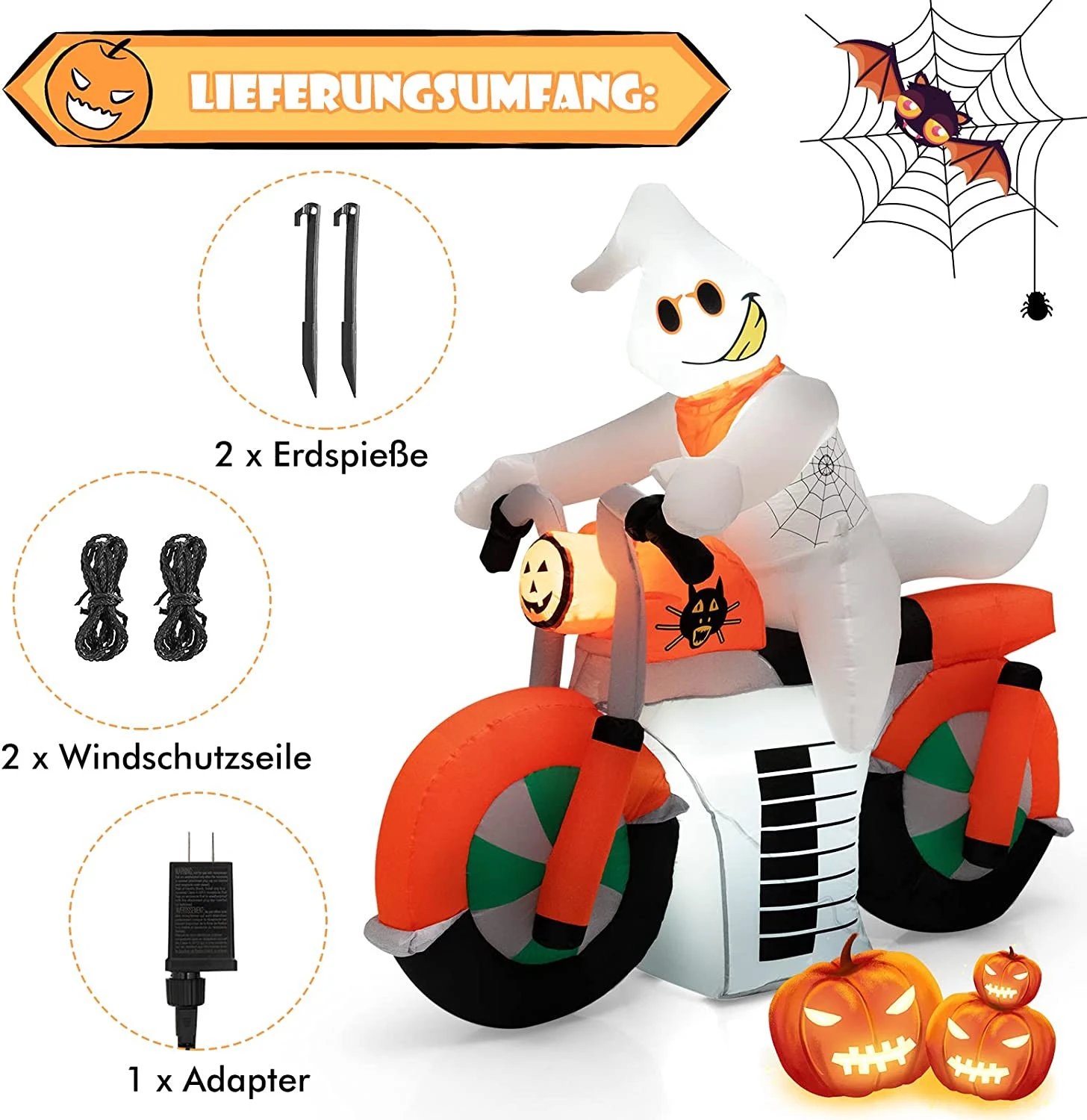 - Lieferumfang: 1 x Aufblasbarer Geist auf einem Motorrad;2 x Erdspieße;2 x Seile;1 x Anleitung