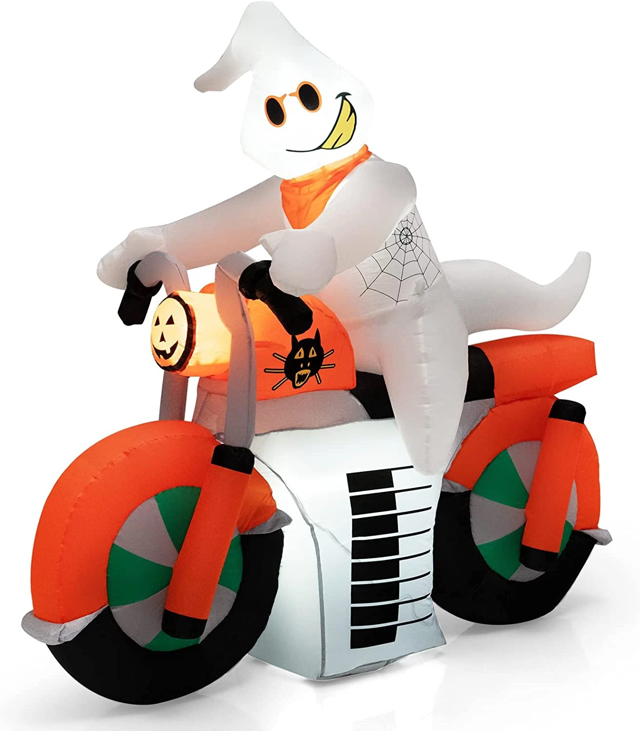 【Perfekte Halloween-Deko】 Ein cooler Geist mit Sonnenbrille und Halstuch fährt auf dem Motorrad und zeigt ein Hooligan-Lächeln. Inzwischen hat es Spinnennetz- und Hexenkatzendekorationen, die das Halloween-Thema hervorheben und Sie sofort an diese Szenen in Gruselfilmen und Volksmärchen erinnern.