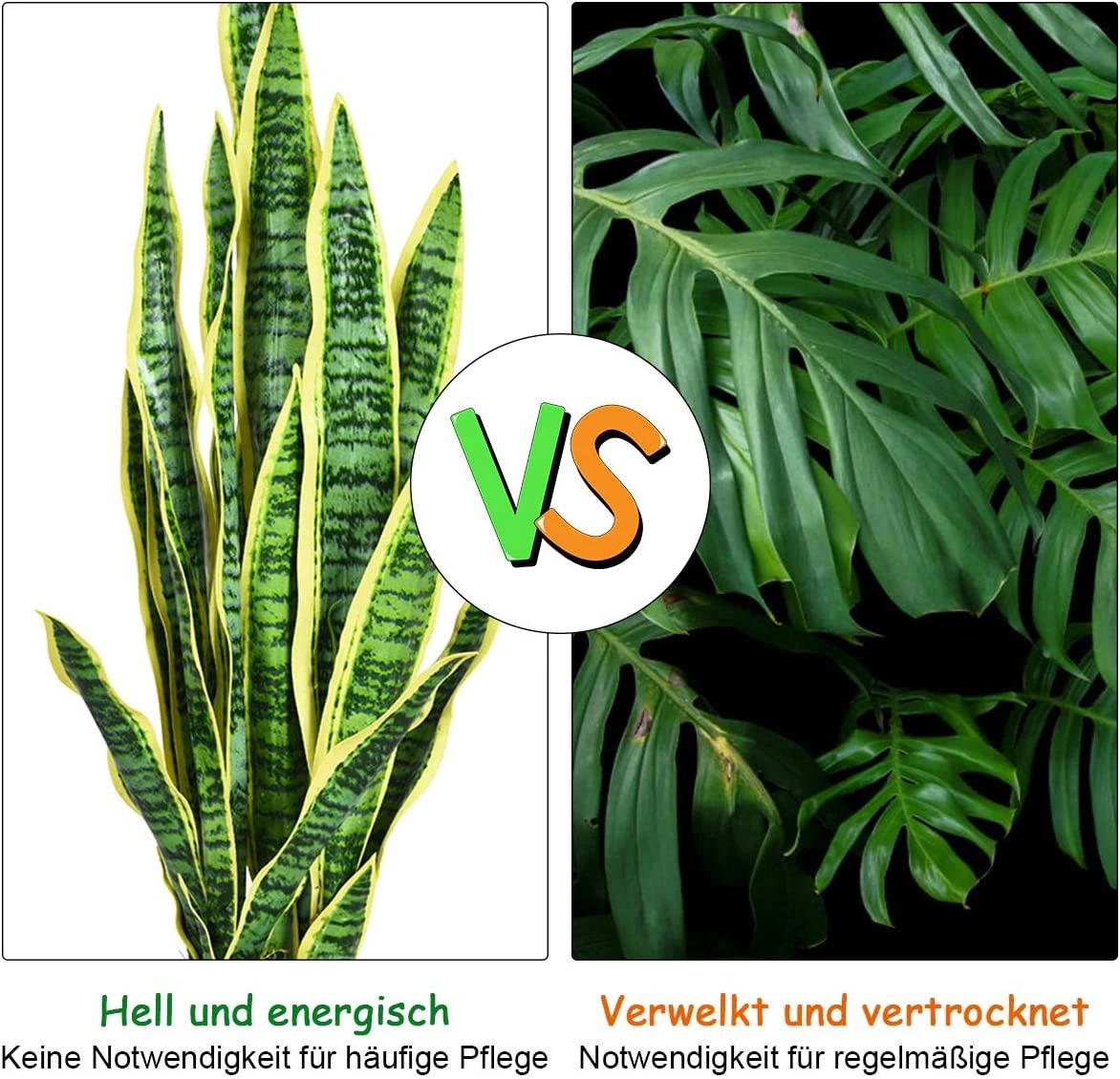 【Perfekte Nachbildung】 Die künstliche Pflanze wirktüberaus realistisch und hat schlanke und breite Blätter. Diese Nachbildung verfügt über eine lebensechte Textur und eine lebendige Farbe und ahmt die echte Pflanze perfekt nach. Dieausgezeichnete Verarbeitung macht die Pflanze nicht nur lebensecht, sondern gibt Ihnen ein echtes und natürliches Gefühl, wenn Sie sie berühren.