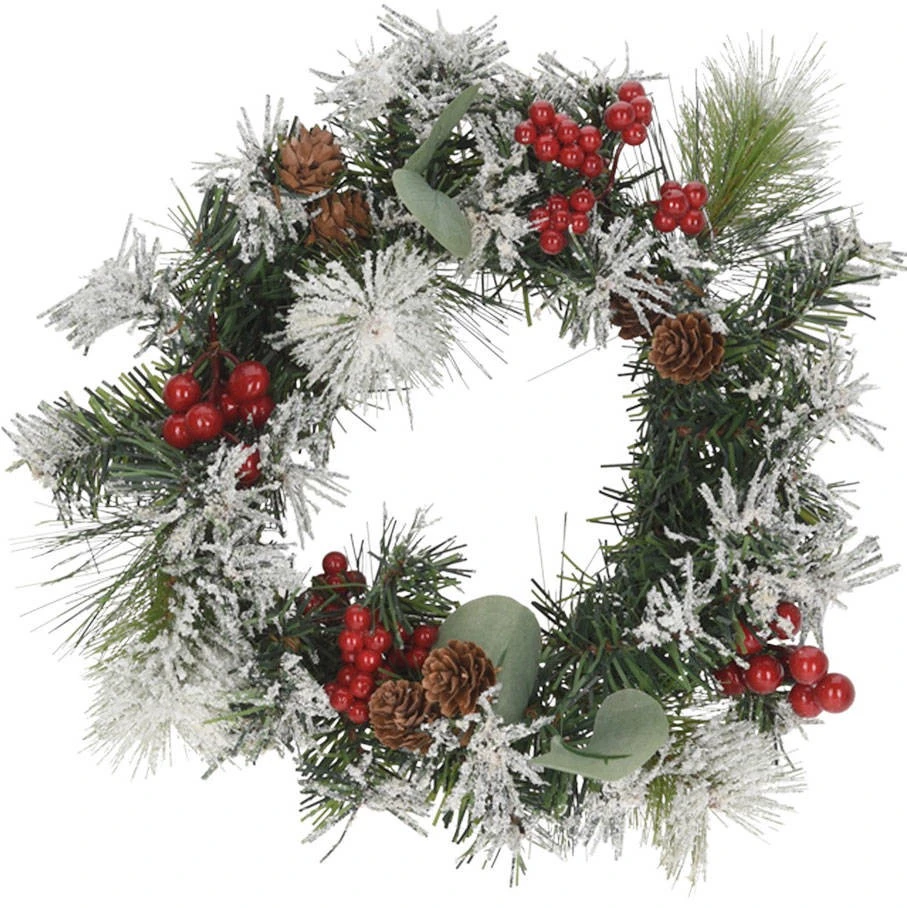 Weihnachtskranz mit Vogelbeere, Ø 30 cm, mit Schnee dient als multifunktionales Dekoelement in jedem Haus. Dieses festliche Schilf kann einfach an Ihre Haustür gehängt werden, um den Gästen zu zeigen, dass Ihr Zuhause offen ist und für die Weihnachtsfeier vorbereitet ist.