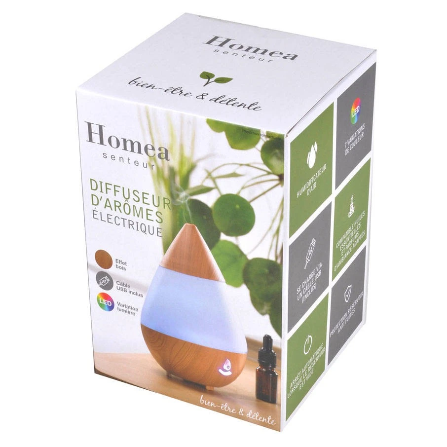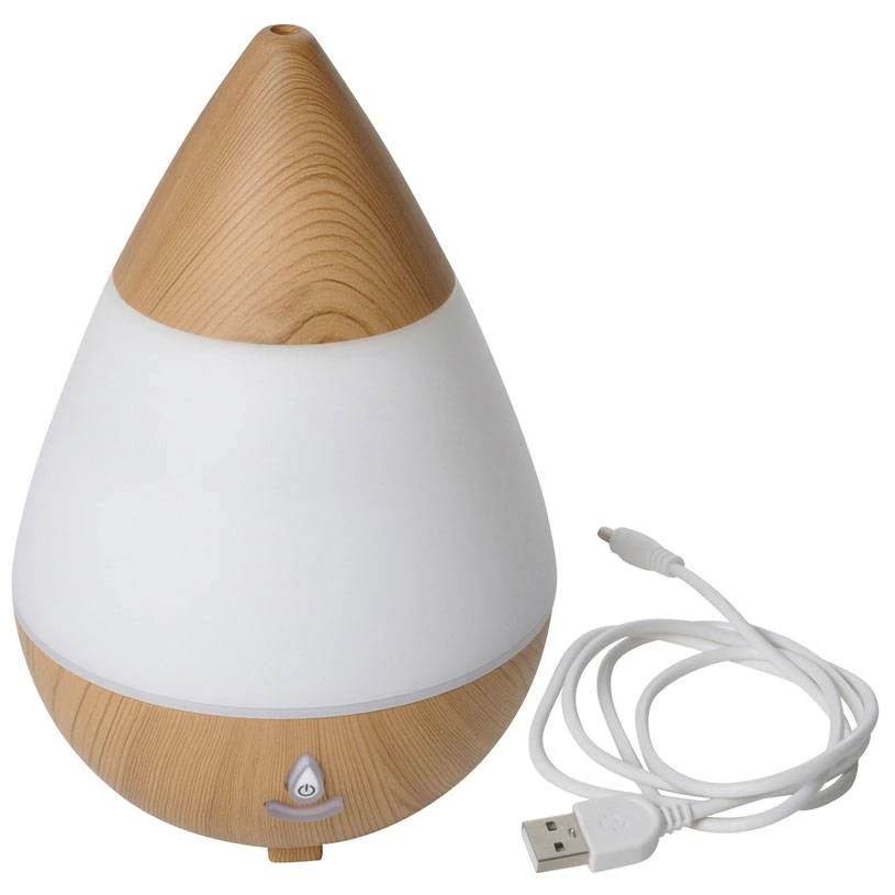 Der Luftbefeuchter hat ein Fassungsvermögen von 200 ml und Abmessungen von 14 cm Durchmesser und 20 cm in der Höhe. Es wird über ein USB-Kabel mit Strom versorgt. Es ist ein Vorschlag der Marke Douceur d’Intérieur.