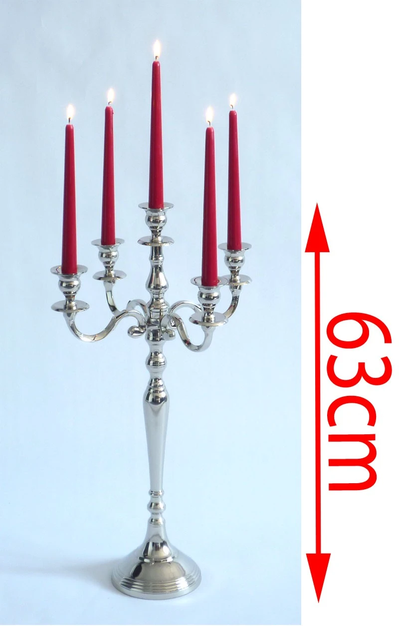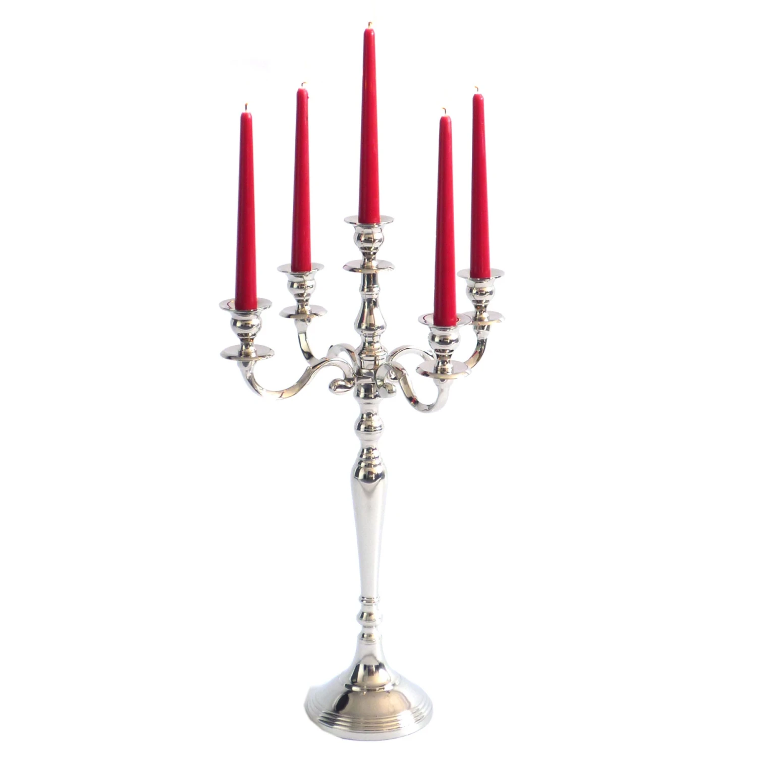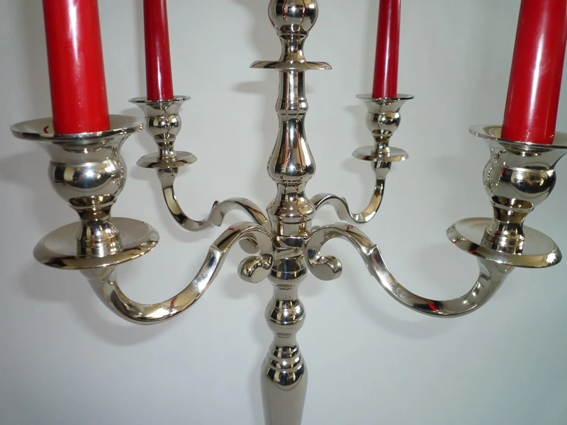Eleganter 5-armiger Kerzenhalter aus vernickeltem Metall in Silber-Optik.