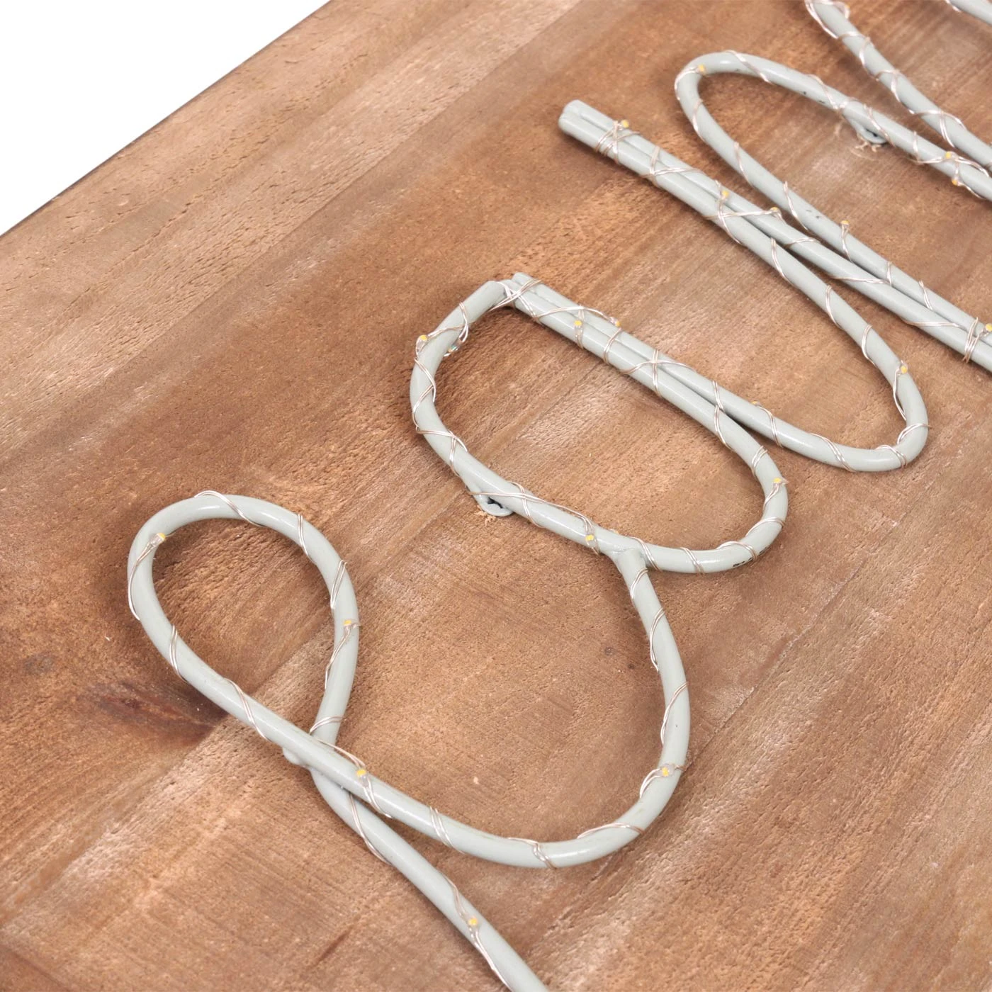 Verschönern Sie Ihr Zuhause mit diesem einzigartigen Leuchtbild. Das Wandbild ist ideal geeignet für die gemütlichen Ecken Zuhause, denn die LEDs in dem natürlichen Holz verleihen Ihrem Zimmer einen neuen Glanz, ob am Tag, Dämmerung oder bis in die Nacht. Die Technik steht dem Gesamteindruck nicht im Wege, denn die Batteriebox ist auf der Rückseite diskret verstaut. Erhältlich sind diese Schilder mit verschiedenen Schriftzügen.