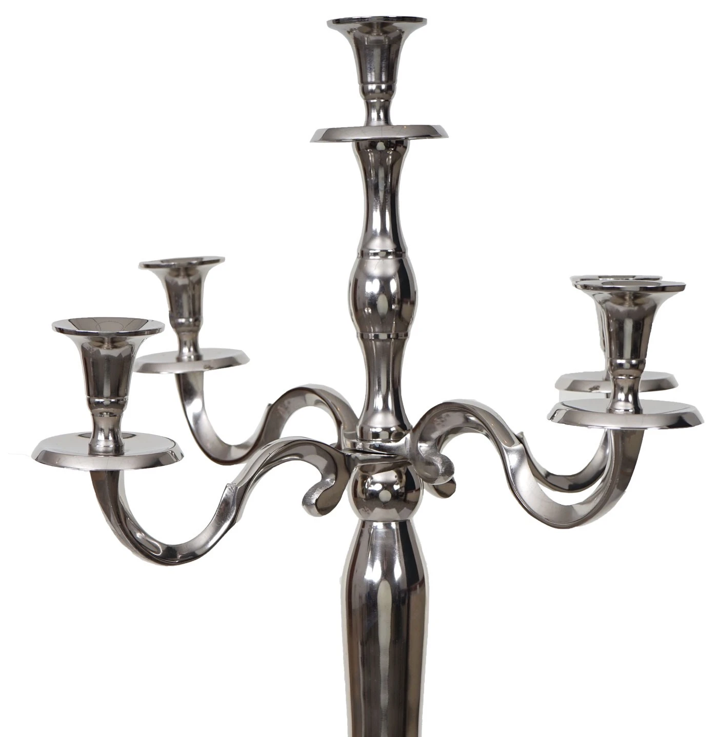 Unsere Kerzenleuchter strahlen mit ihrer stilisierten Barockmanier eine klassische Eleganz aus. Passend kombiniert oder in Szene gesetzt können sie protzig oder schlicht wirken, ganz wie Sie es wünschen. Aus massivem Aluminium gefertigt ist unser 2,5 kg schwerer Kerzenleuchter besonders standfest. Ob nun als exklusive Dekorationsartikel auf einer Messe oder als Blickfang für daheim, dieser Kerzenständer wird sie definitiv glücklich machen.