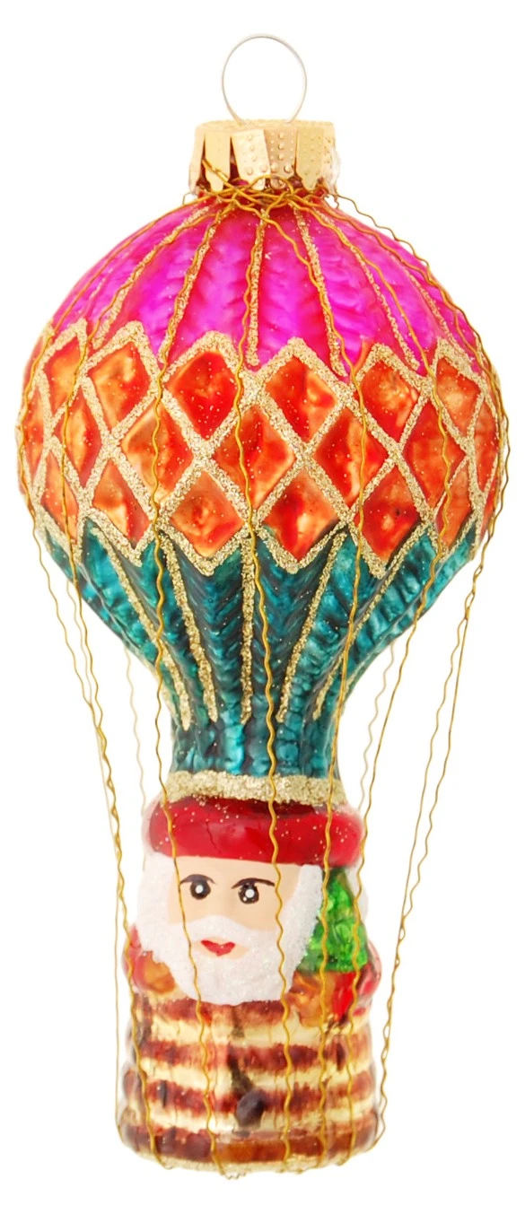 - Lieferumfang: Multicolor 11cm Weihnachtsmann im Ballon, Glasornament, mundgeblasen und handdekoriert, mit Perldraht umsponnen