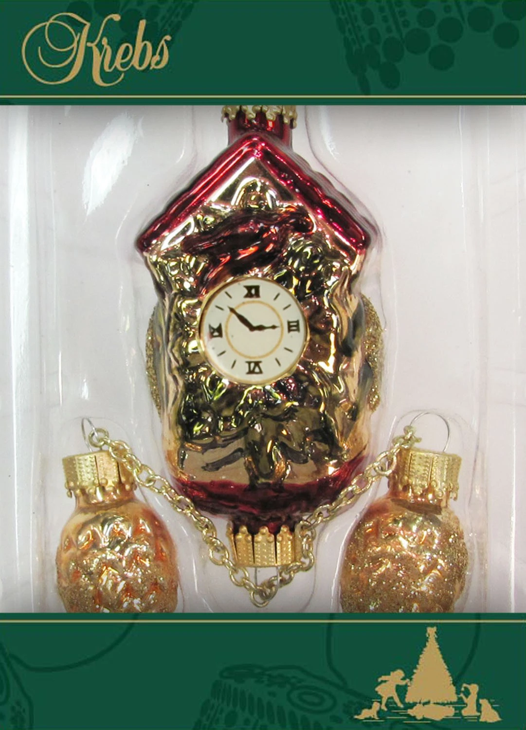 - Lieferumfang: Rosenrot/Cognac, 15cm Kuckucksuhr, Glasornament, mundgeblasen, handbemalt