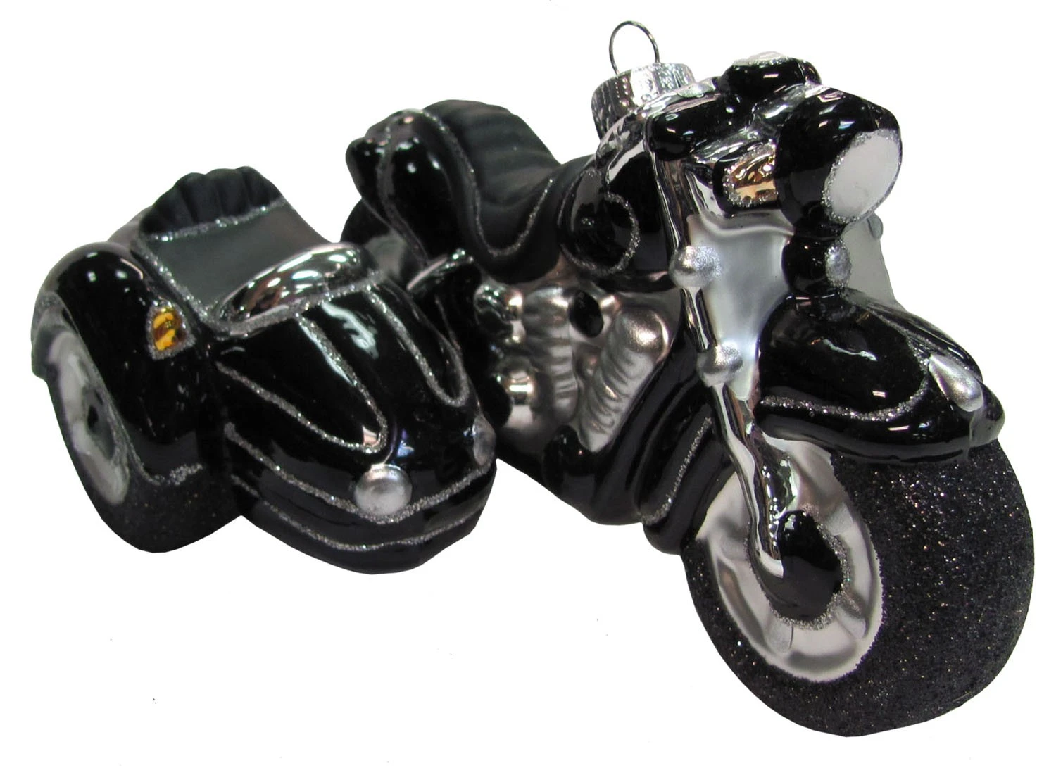 - Lieferumfang: Silber/Schwarz 15cm Motorrad mit Beiwagen Glasornament mundgeblasen und handekoriert