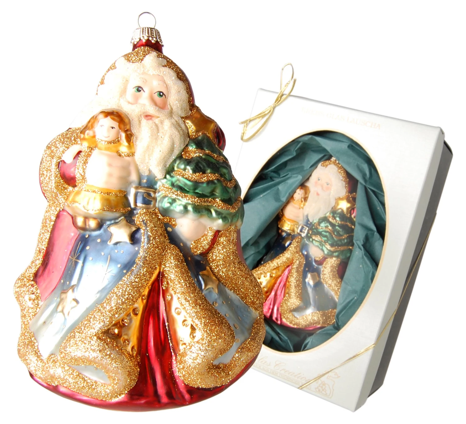 - Lieferumfang: Multicolor 20cm Weihnachtsmann mit Kind, Glasornament, mundgeblasen und handdekoriert