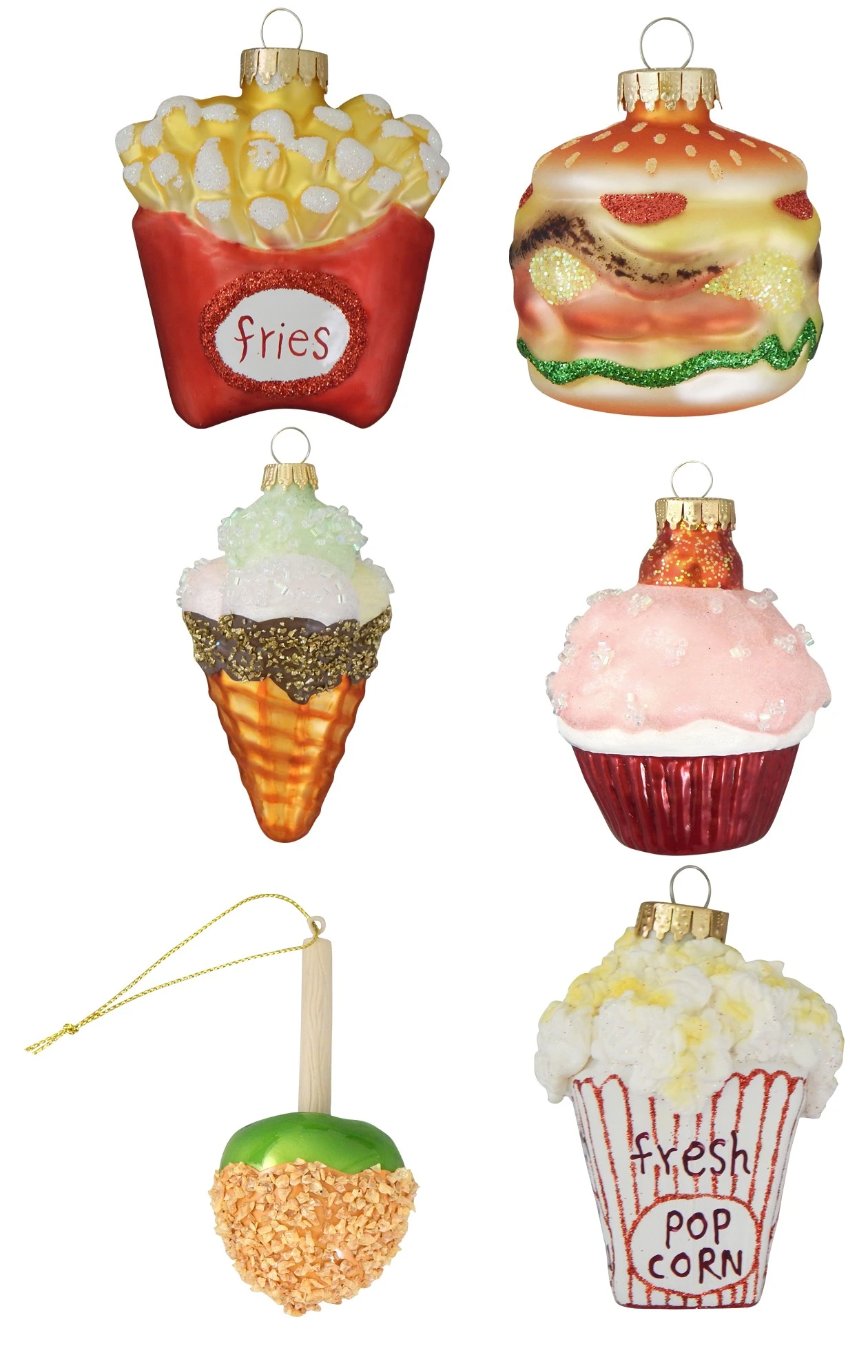 - Lieferumfang: Multicolor 8cm Baumschmucksortiment aus Glas, verschiedene Speisen, mundgeblasen, handekoriert (6)