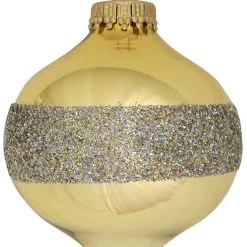 - Lieferumfang: Gold satin 8cm Glastropfen mit Dekor Glitzerband (4)