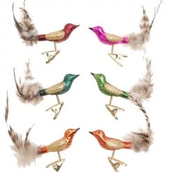 - Lieferumfang: Multicolor 9cm Minivögel aus Glas auf Clip mundgeblasen, handekoriert mit Federschwanz