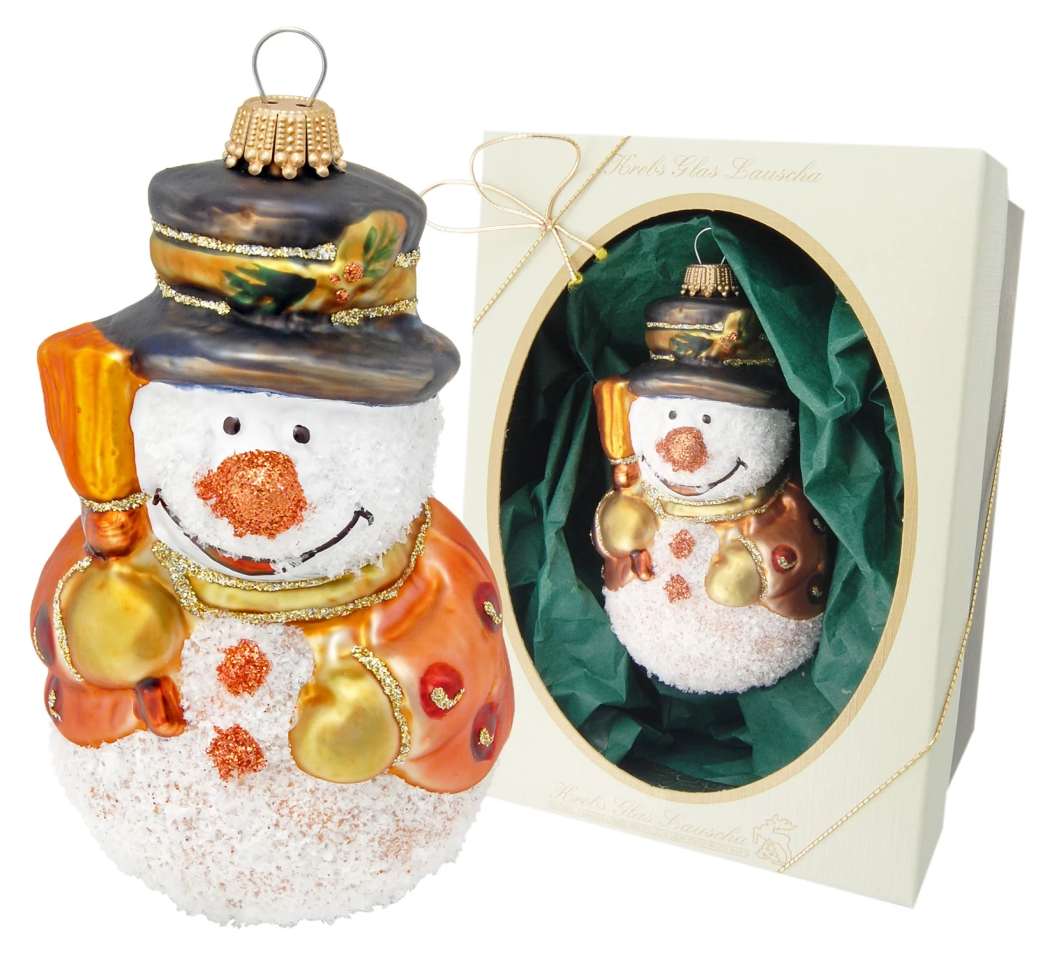 - Lieferumfang: Multicolor 9cm Kleiner Schneemann mit Besen und Hut, Glasornament, mundgeblasen und handdekoriert