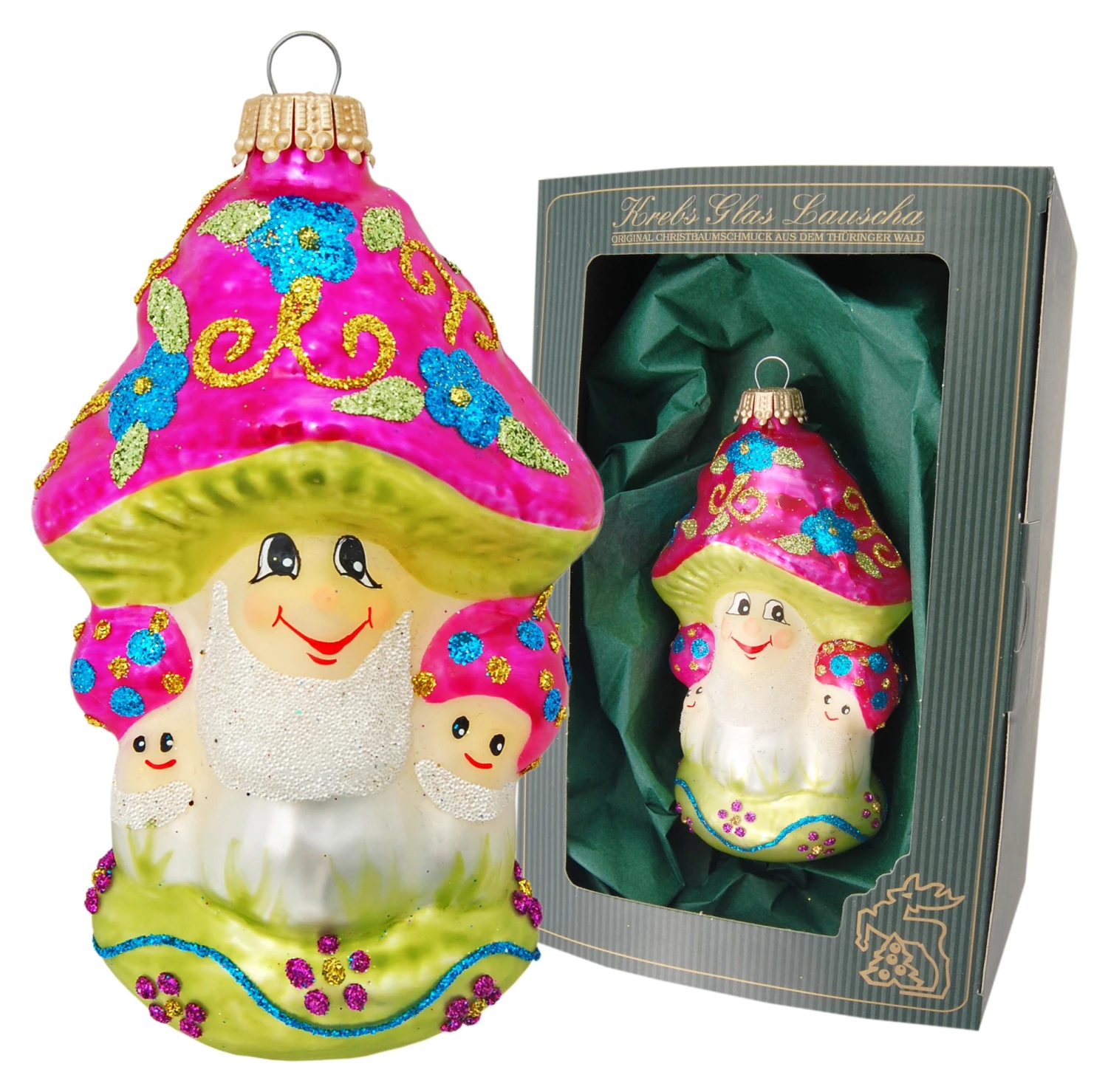 - Lieferumfang: Multicolor 9cm verzauberte Pilzfamilie, Glasornament, mundgeblasen, handbemalt