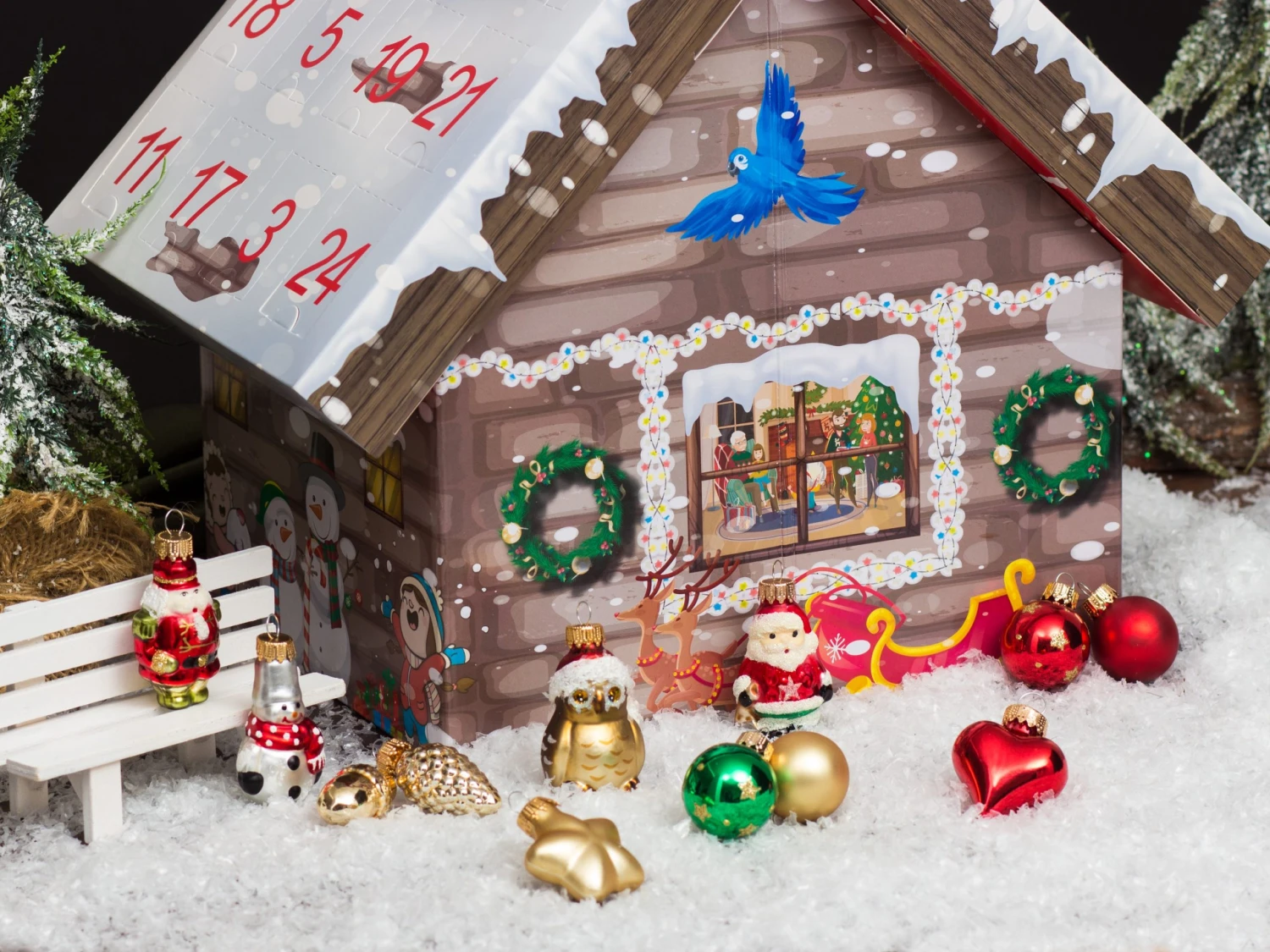- Lieferumfang: Adventskalender Haus zum Selberbauen mit 8 Stück Glasfiguren 5cm, 4 Stück Minikugel Uni satin 4cm, 4 Stück Minikugel glanz dekoriert 4cm, 8 Stück Formen 5cm aus Glas mundgeblasen und handdekoriert + Mailbox