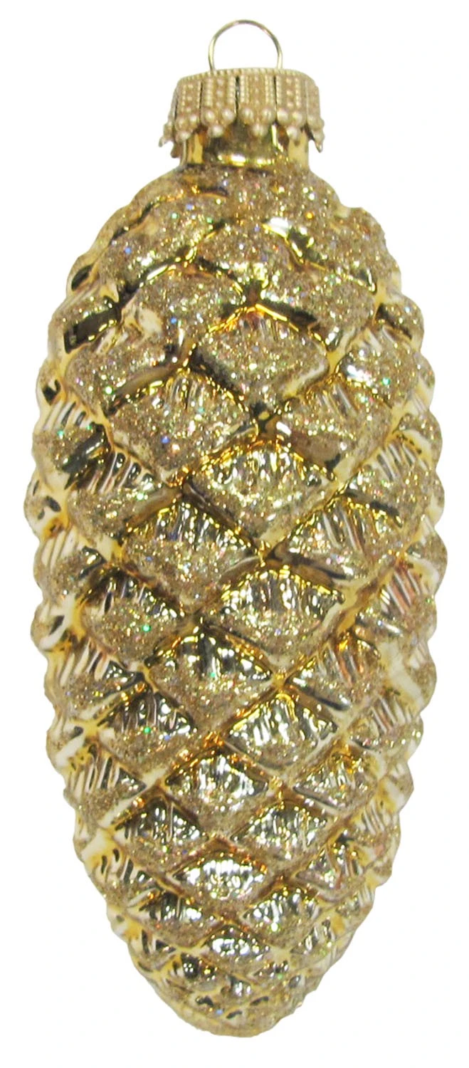 - Lieferumfang: Gold 10cm Tannenzapfen aus Glas, mundgeblasen, handdekoriert (1)