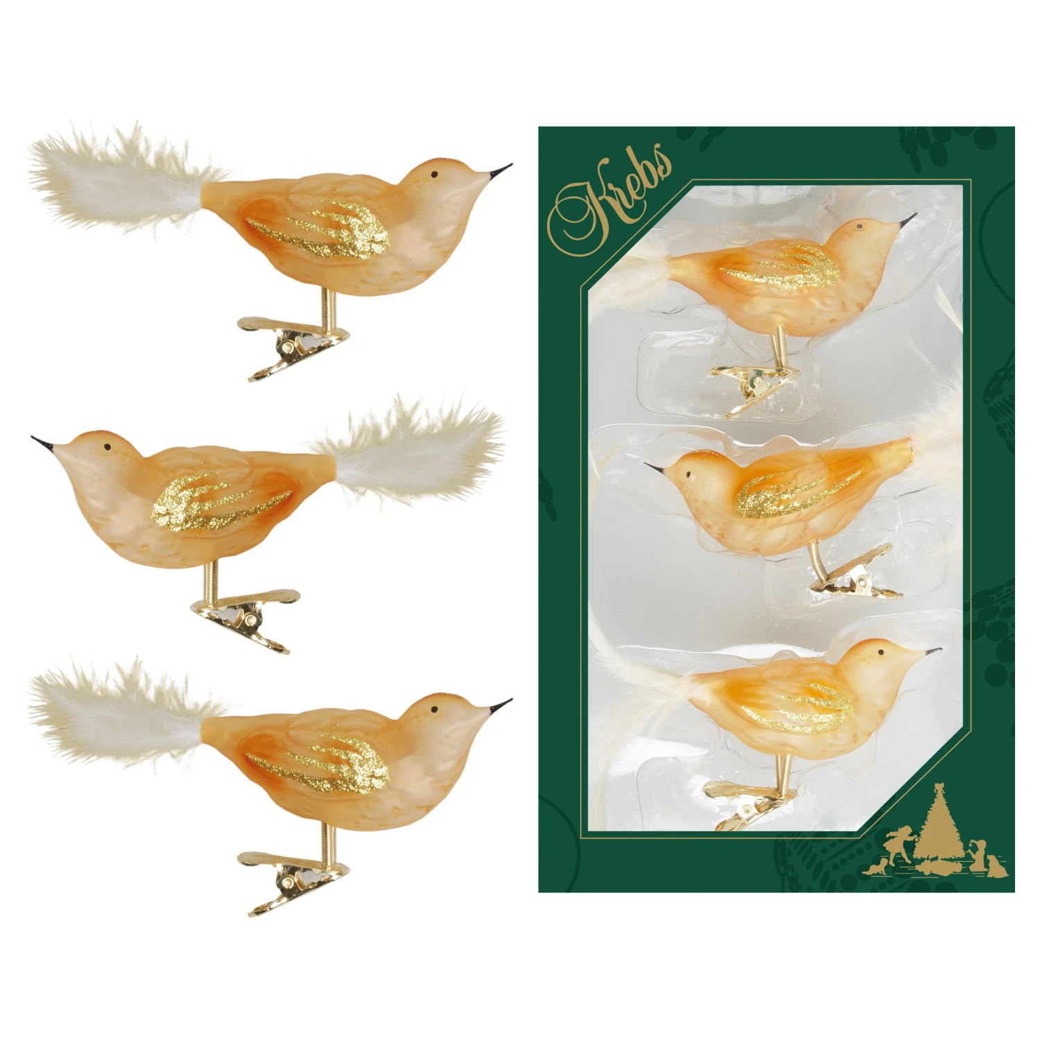 - Lieferumfang: Gold schattiert transparent 11cm Glasvögel auf Clip mit 6cm Federschwanz mundgeblasen und handdekoriert, 3-fach sortiert