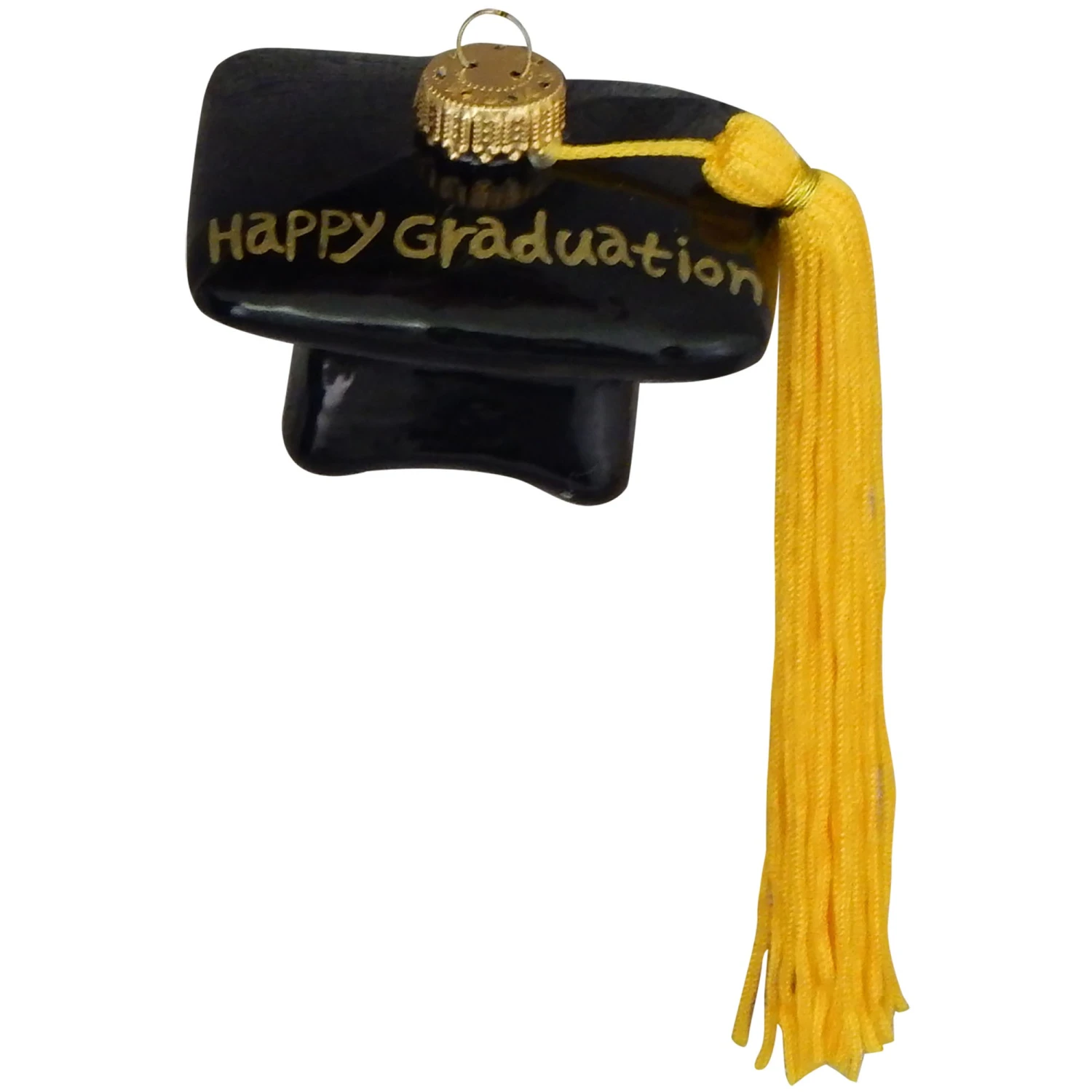 - Lieferumfang: Schwarz/Gold Gratuation Hut mit Stoff-Litze, 6cm, Glasornament, mundgeblasen und handekoriert (1)